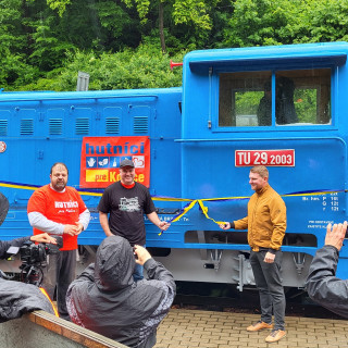 Before the actual division into workplaces, we were participants in a nice event, the commissioning of the Danka motor locomotive after a complete repair. The symbolic ribbon in the colors of Košice was untied by Michael Piekut on behalf of U. S. Steel Košice and Slavomír Sobek on behalf of BESSPRO (Surface Treatments), which supplied colors for the renewal of the popular blue locomotive. The companies VAMT and Žeriavy Košice, which provided the transport of Danka, also helped with the repair.