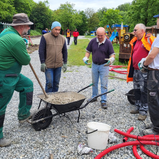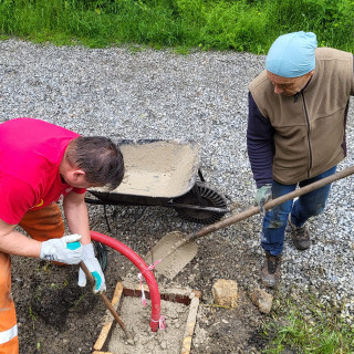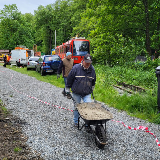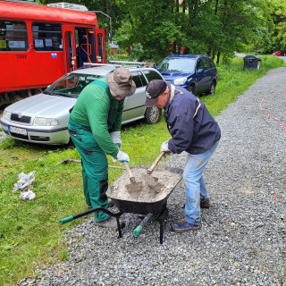 Marcel Novosad, Stano Ferencak, Robert Zihlavnik, Roman Fedak, Robert Jenik, Igor Molnar, Dusan Bakon, Michal Tancak and Fero Gregor immediately set about completing the excavations for the electrical connection, its installation and subsequent burial. The electrical connection will be used to illuminate the sidewalk from the Alpinka station to the children's area and to the tram, which is part of the exhibits. We learned that it used to roam the streets of Bratislava (Bratislava, unlike Košice, has a narrow gauge, the same as our Children's Historical Railway).