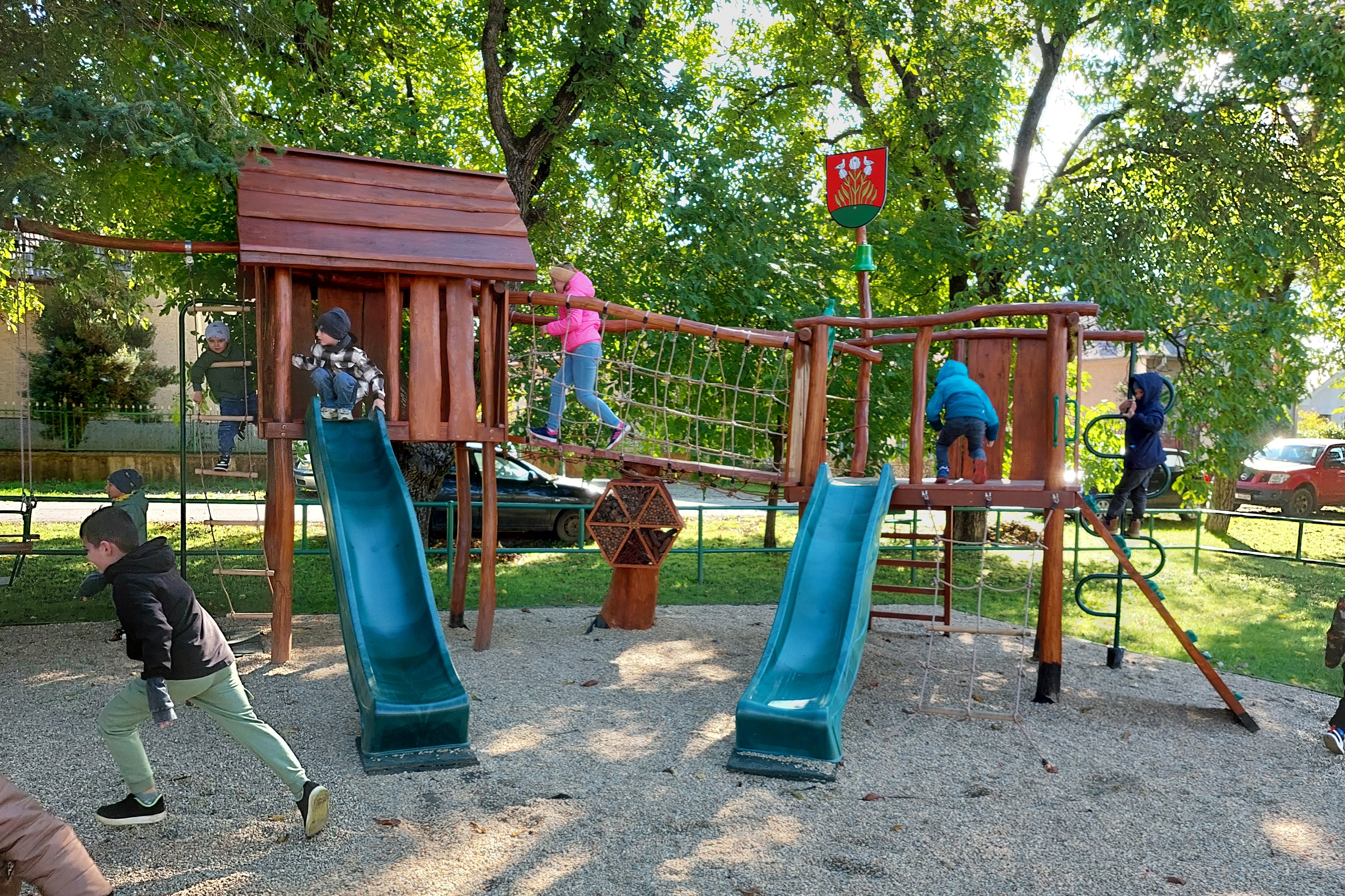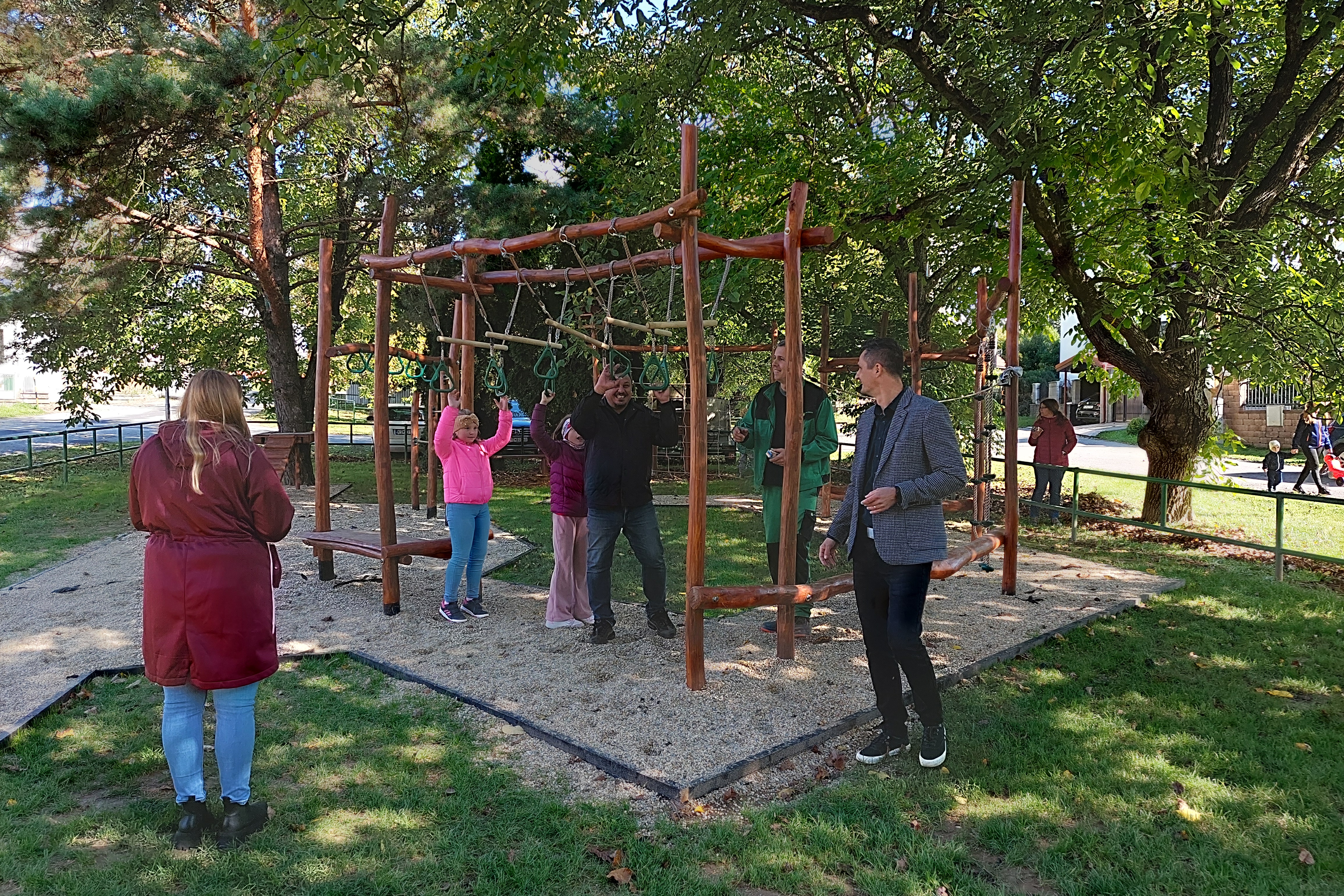 Almost all work was carried out on their own. Volunteers from the ranks of the inhabitants of the village, many of whom are employees of USSK, joined forces with the employees of the municipality, the civic association V plus, the local organization Csemadok in Cestice, as well as employees of the municipality performing community service. The municipality received part of the material from partners, whether wood or corrugated pipe, which is used for road construction, and a tunnel was created from it, which is popular with the little ones. Recycled waste containers that would otherwise end up in a landfill have also found use here. Thanks to the wooden cladding, they fit naturally into the park environment.