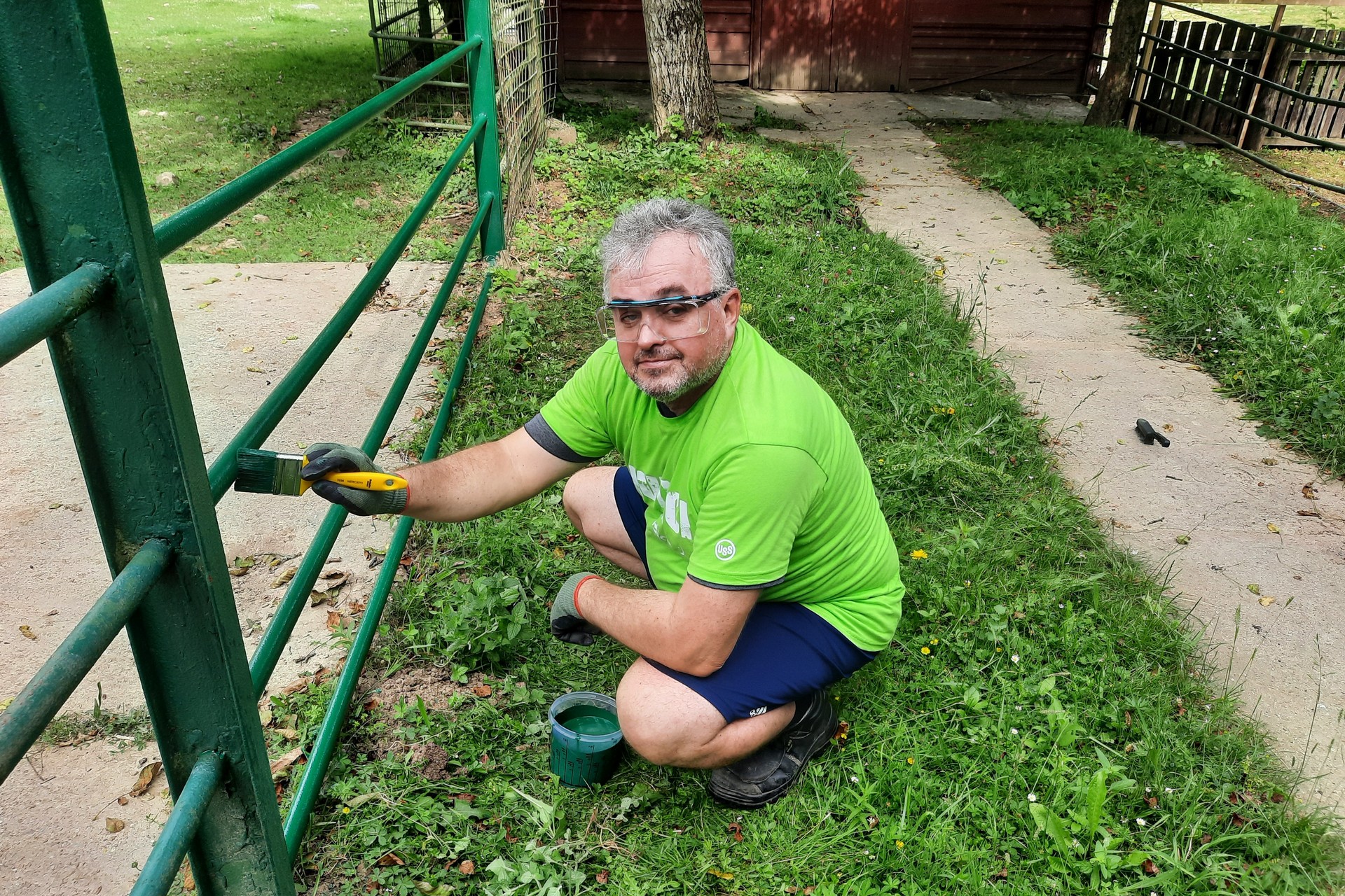 Martin Šima: "There is enough work here. We paint the old fencing. First, we sand it, and then we put a new coating. We work with penguins."