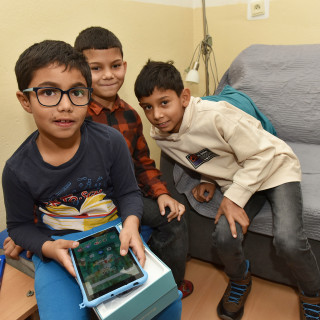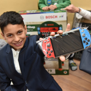 Emil, Marcelka, Jožko and Riško were delighted with the game consoles. They immediately turned them on skillfully. We laughed that they were bigger than themselves.