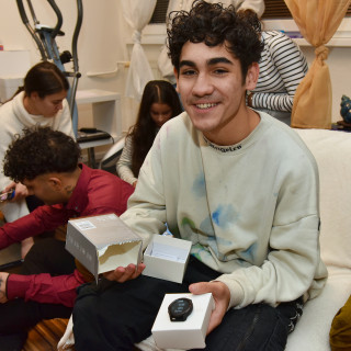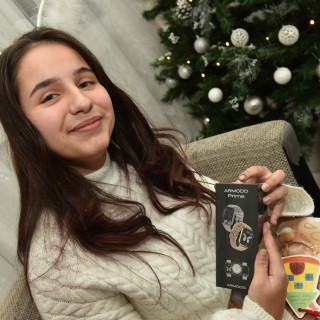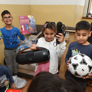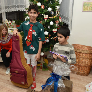 Everything related to music is popular among teenagers. Simonka was pleased with the speaker and Karin with headphones, from which they will listen mainly to Romani songs. Jaro immediately put on white headphones, looking like a superstar with them. He revealed that he will most often listen to rap in them. Paťa wanted a guitar. She has already had the opportunity to try playing the guitar and she was doing well. Who knows, maybe next year she will be able to play guitar music by the Christmas tree. Kevin wanted a cajon - it seems that this drum box will be a great success, the boys tried it out one after another.
