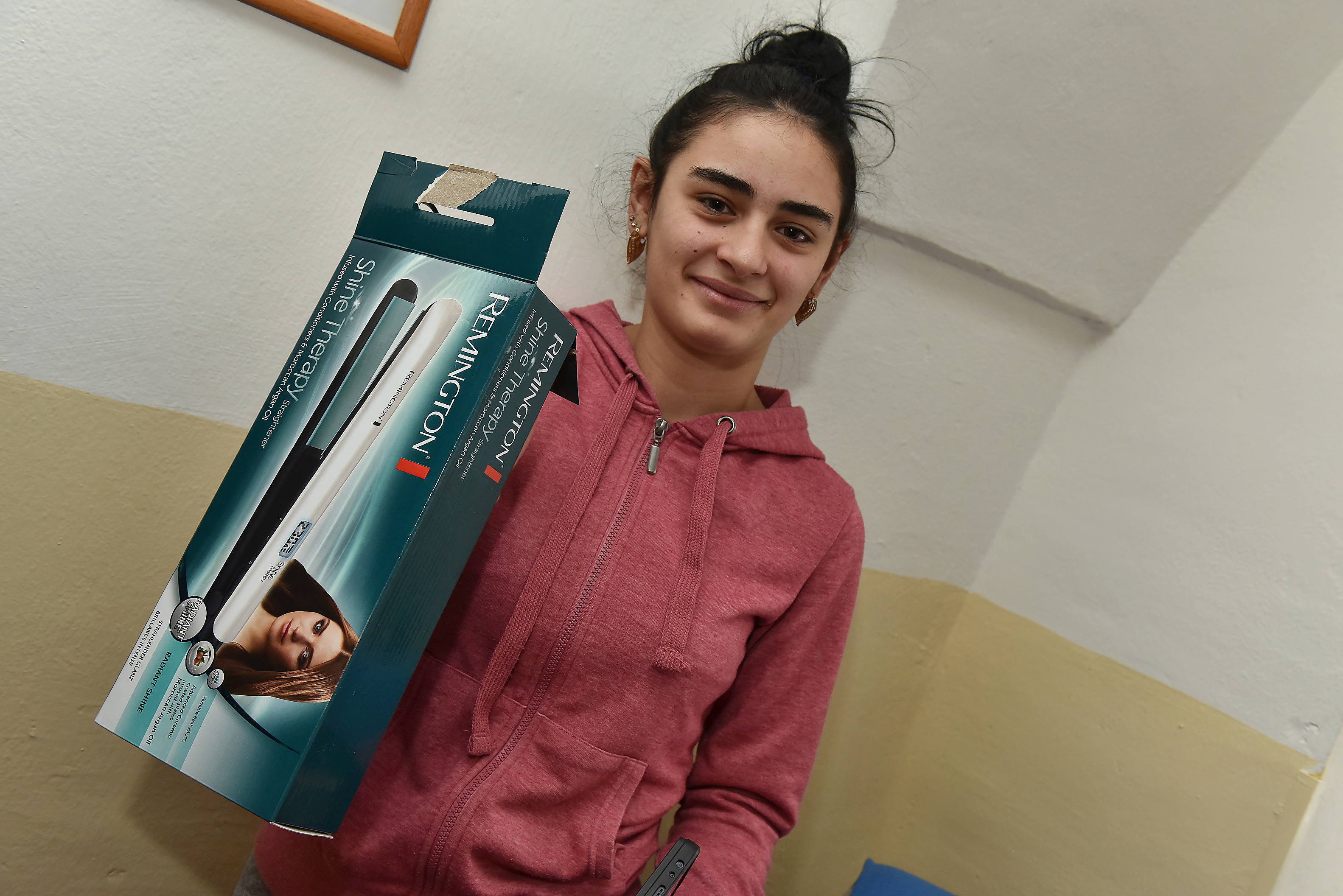 Kvetka was pleased with the cosmetic case. Rozália got a hair straightener and Melánia got a curling iron. In their free time, they do their hair with the girls. But not only girls care about their appearance. Fourteen-year-old Samuel is a well-known barber here at home, and his brother Kristián is learning from him. The new professional clippers made the boys happy and they immediately tried out their blades.