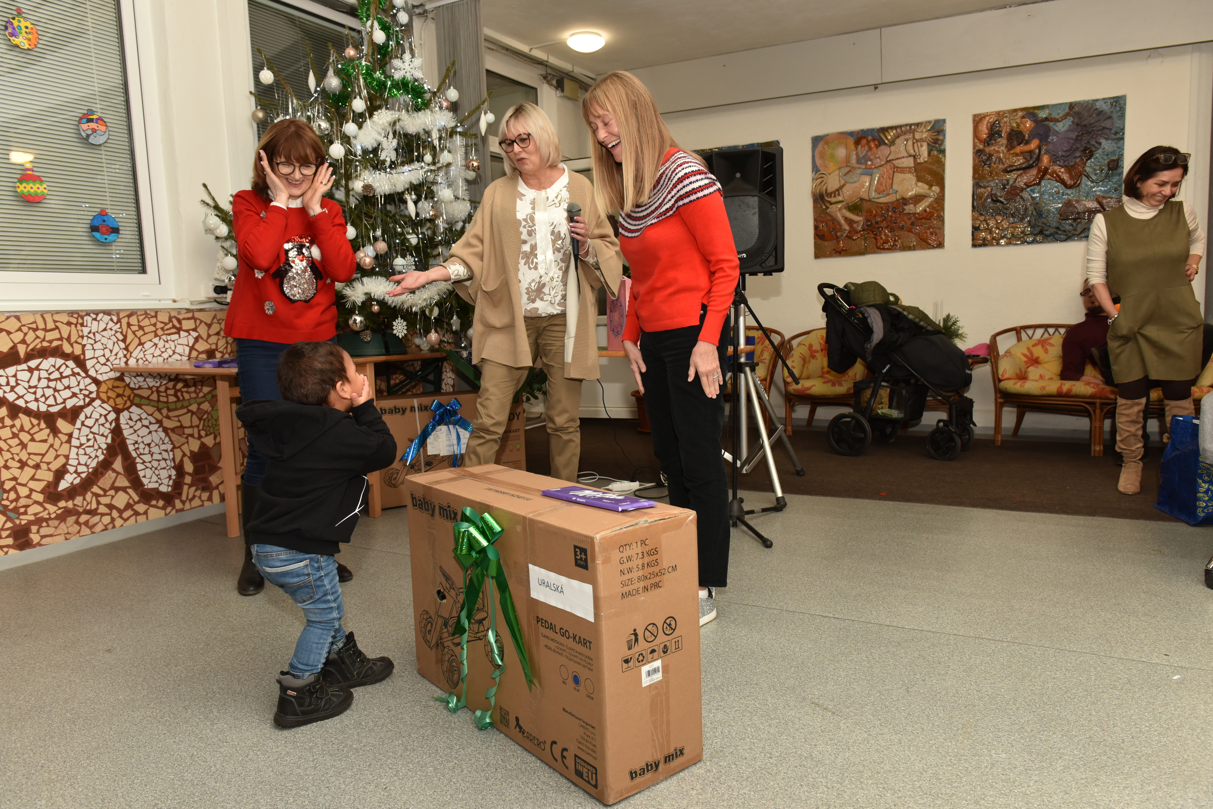 In the afternoon, we moved back to Košice, to the Center for Children and Families Košice - Uralská. Here we were no less warmly welcomed by the director of the center, Jana Funderáková, and of course, many pairs of children's eyes, shining with anticipation and joy. The children from the families Bociany, Lienky and Slnečnice provided a nice program at the Christmas tree. There were also professional parents in the audience.