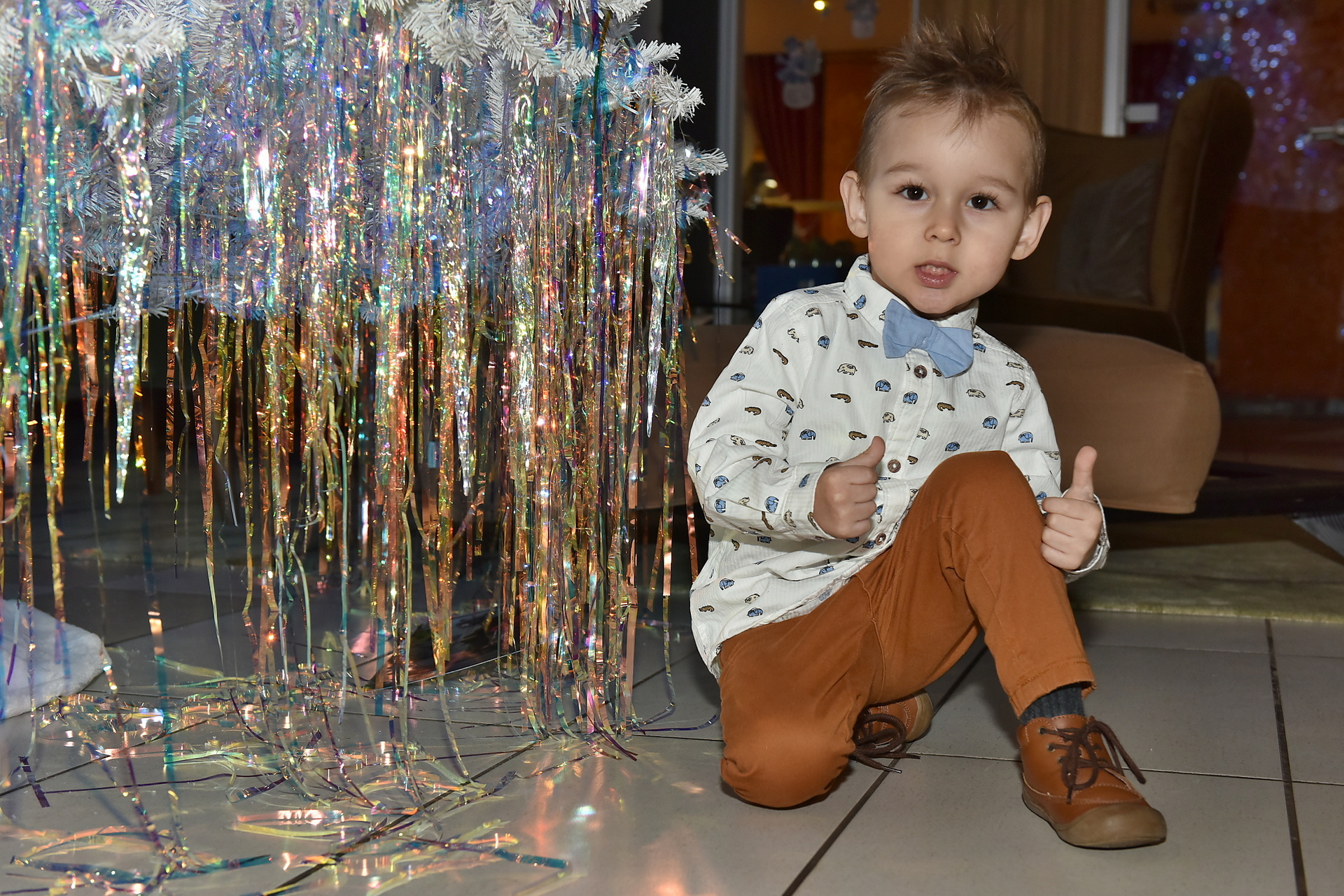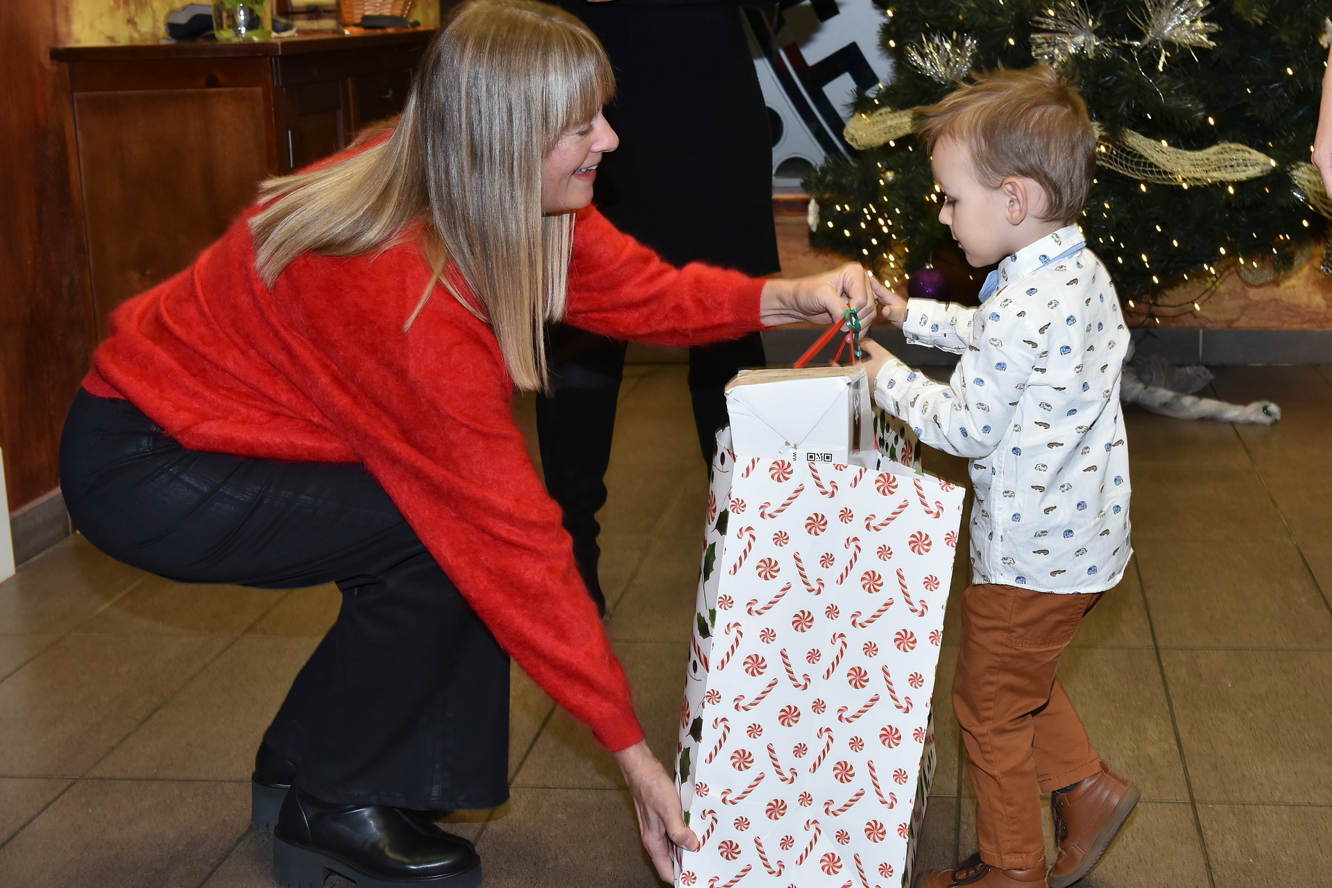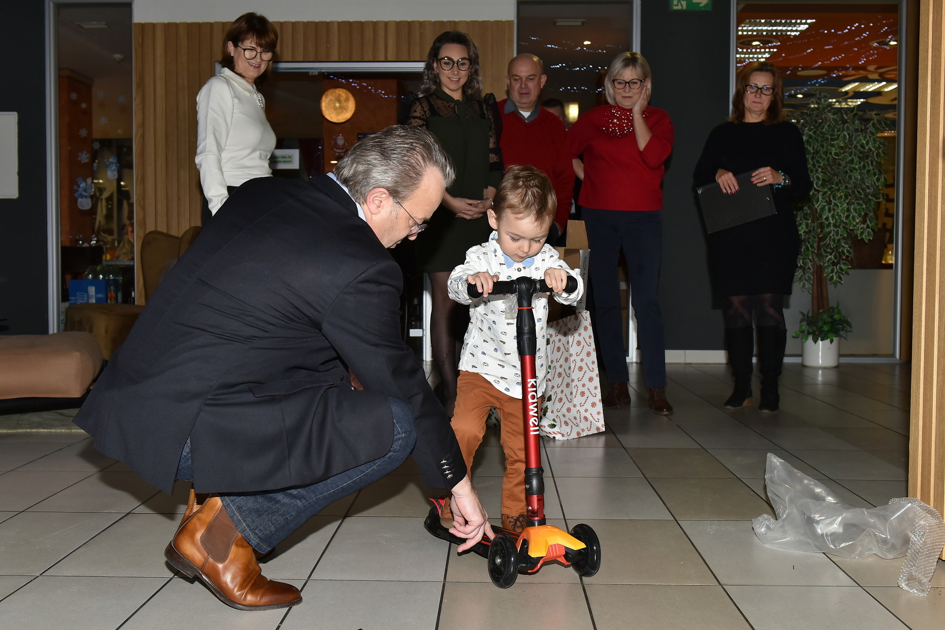 Lukáš Petrus's son Darius is a small actor. While accepting the gift, he also recited a poem that his mother taught him. He got a scooter and was thrilled to find that it even lit up! He didn't even wait for them to come home and rode straight around the lobby of the restaurant on a scooter. And finally, he posed for our photographer under the Christmas tree.