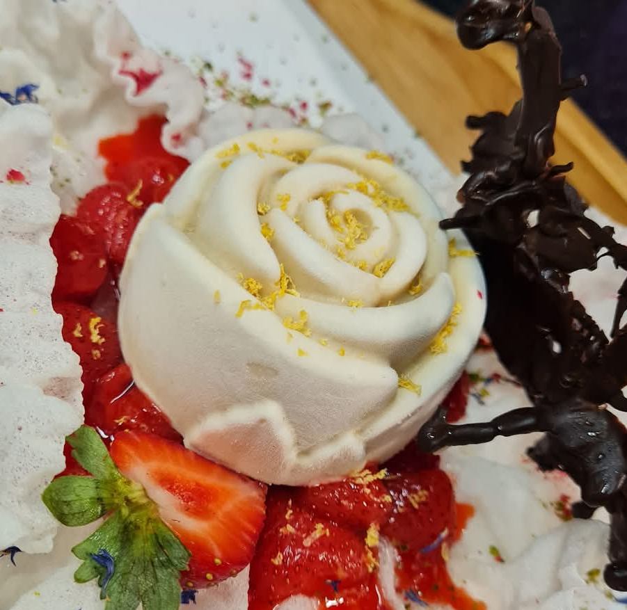 What ingredients does she like to work with? "I like vegetables, especially beetroot, garlic, turmeric, oregano, ground cinnamon, fresh ginger, chili flakes, basil and coriander. I also make various spice mixtures, various flavorings, or natural dyes myself. I don't use any food coloring in my desserts. The dessert is perfectly colored red by beetroot powder, the green color is created from ground, dried leaves of young spinach..."