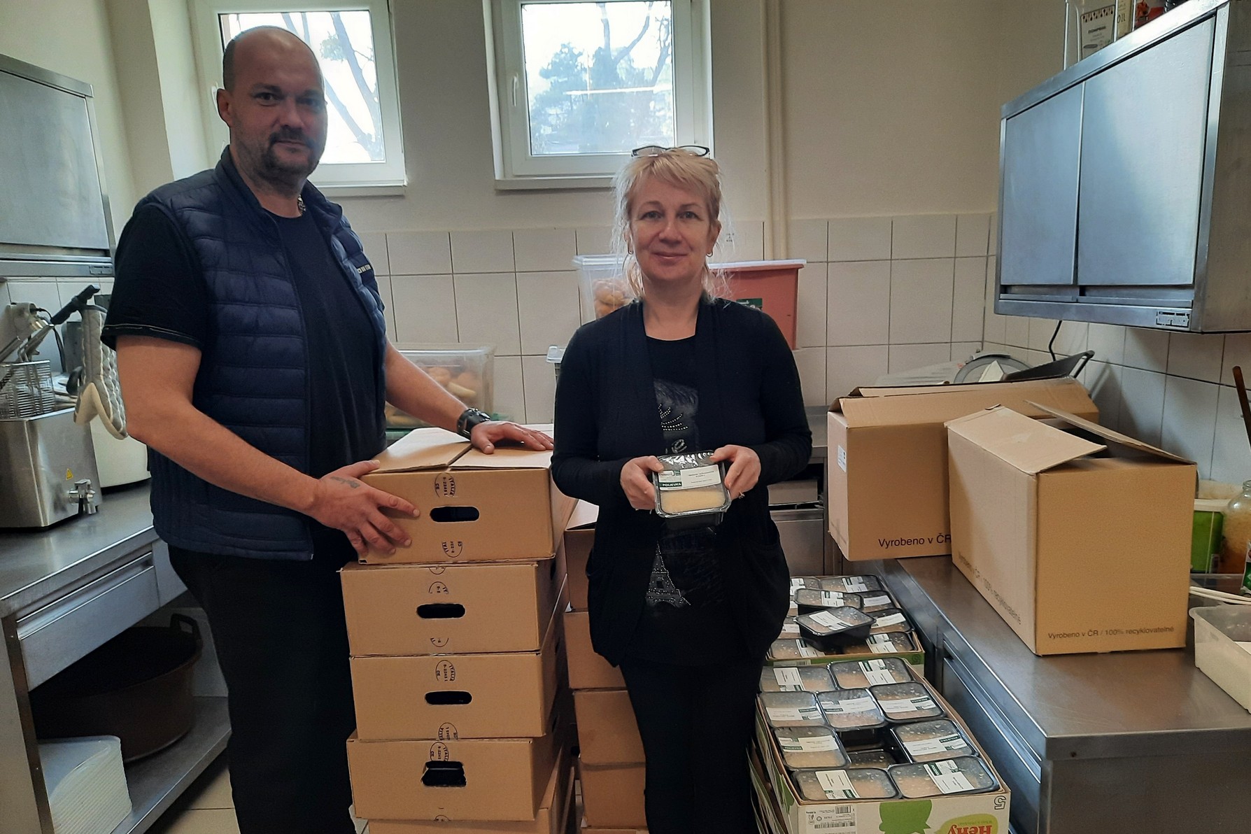"You have helped us a lot. Our clients are sincerely looking forward to it. We thank all the employees who contributed, we are very moved," said social worker Renáta Vašutová (in the photo with her colleague Patrik Blikhart) and added: "Those who work can pay for a "package" with us – breakfast, lunch and dinner. We try to cook at least one hot meal for the others. So your donation will help us save too."
