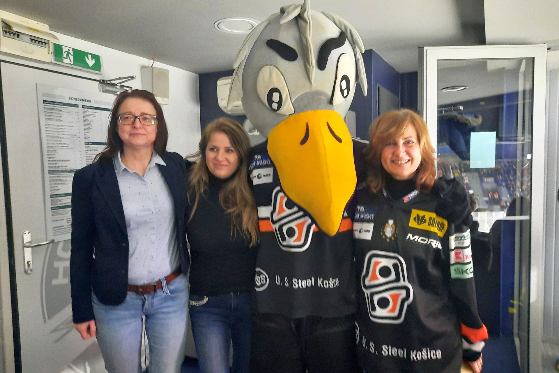 The arrival of Vranka to the sky box also pleased the hostesses, who were invited by the families to this match. From left: Silvia Gaálová, Vice President of U. S. Steel and sponsor of the Women's Network (WIN), Brigita Kurucová, leader of WIN and Elena Petrášková, Vice President and General Counsel of U. S. Steel Košice.