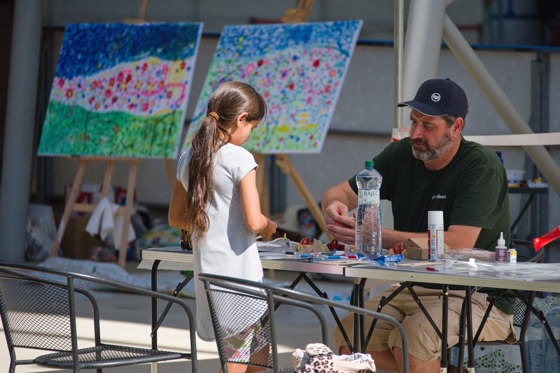 Tables packed with various tools for creative creation, prepared by OZ Tvorivá dielňa, attracted children who like to draw or create something nice. A great attraction was the joint painting of two large paintings, which already beautify the premises of both children's homes. Anyone could put their hand to the work, or rather a brush to the canvas.
