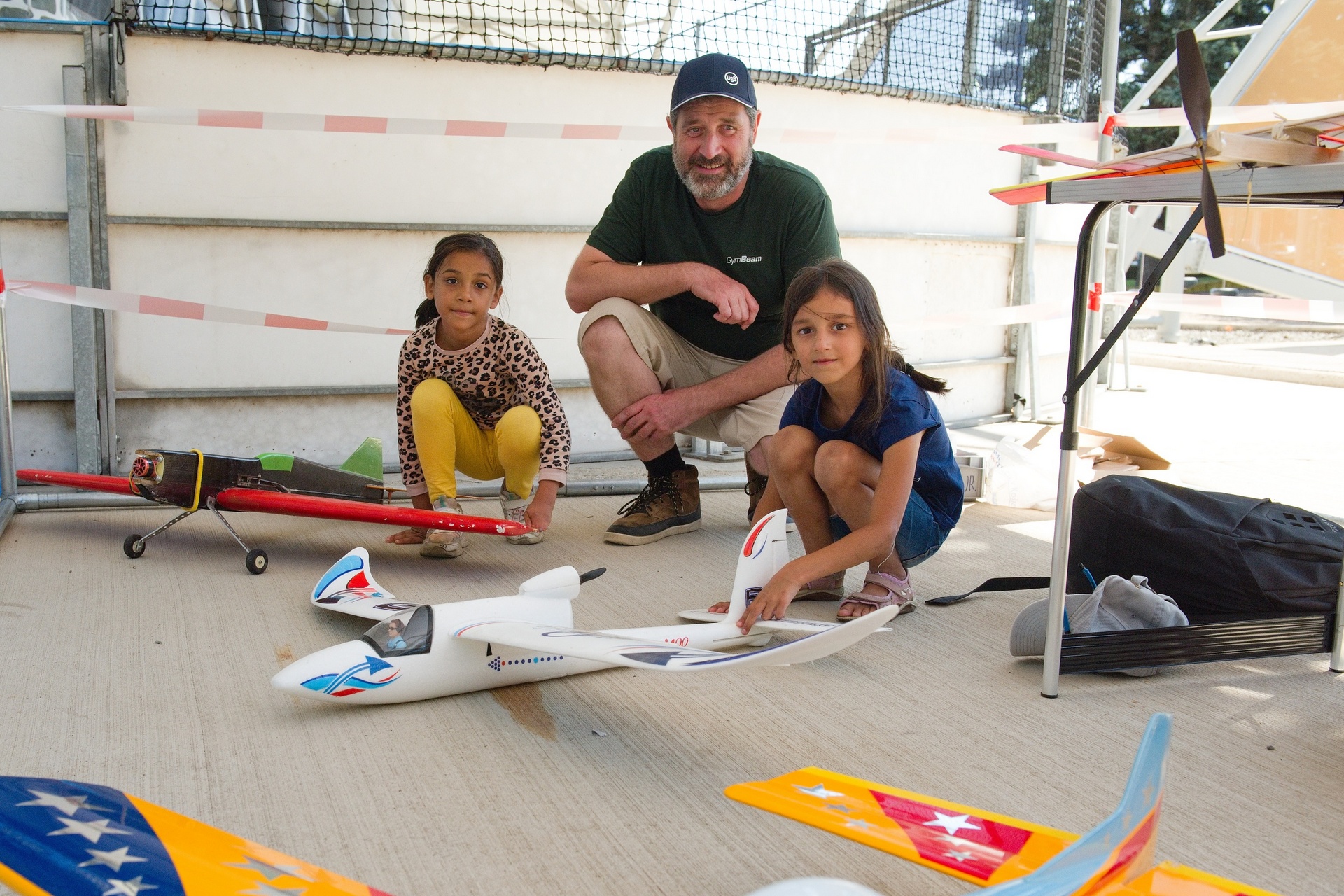 A large group of fans had the production of model airplanes and cars, and children also admired real, large models of airplanes.