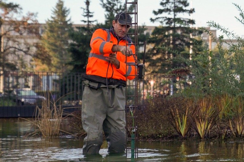 Also this year, we will record all measured values from monitoring towers, where the temperature and humidity of the air approximately 2 meters above the water surface are recorded. We also have a continuous record of temperatures under the water surface and in front of the canteen building. We will evaluate how the impact of the pond on the microclimate in the area is projected. We are also doing a similar measurement at Mlynský náhon, and we will be able to compare the industrial area, common greenery and pond with the greenery of the housing estate and the environment of an artificial watercourse of Mlynský náhon.