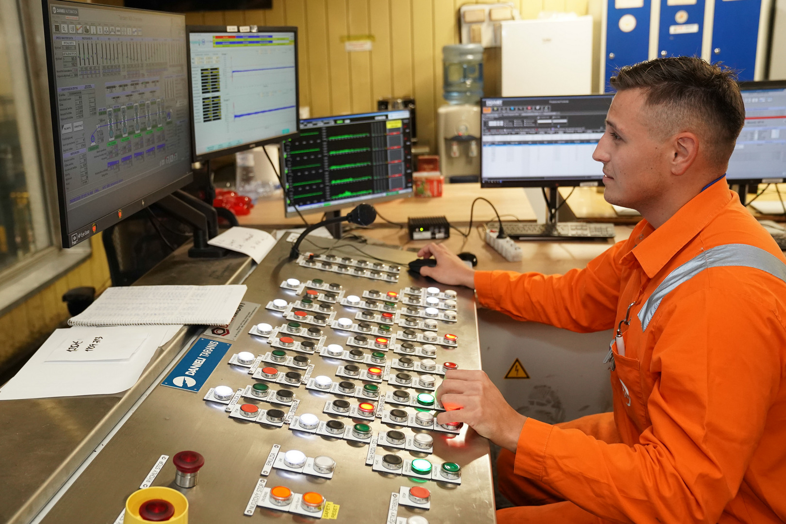 Here, the material is rolled to an output thickness from 0.17 mm – thinner than a razor blade after rolling. From there, it then "travels" mainly to the continuous casting plant, galvanizing plant, dynamoline. Seven colleagues work on the shift, among them a rolling mill operator of the 1st mill. Vladimír Herbert has held this position for three years.