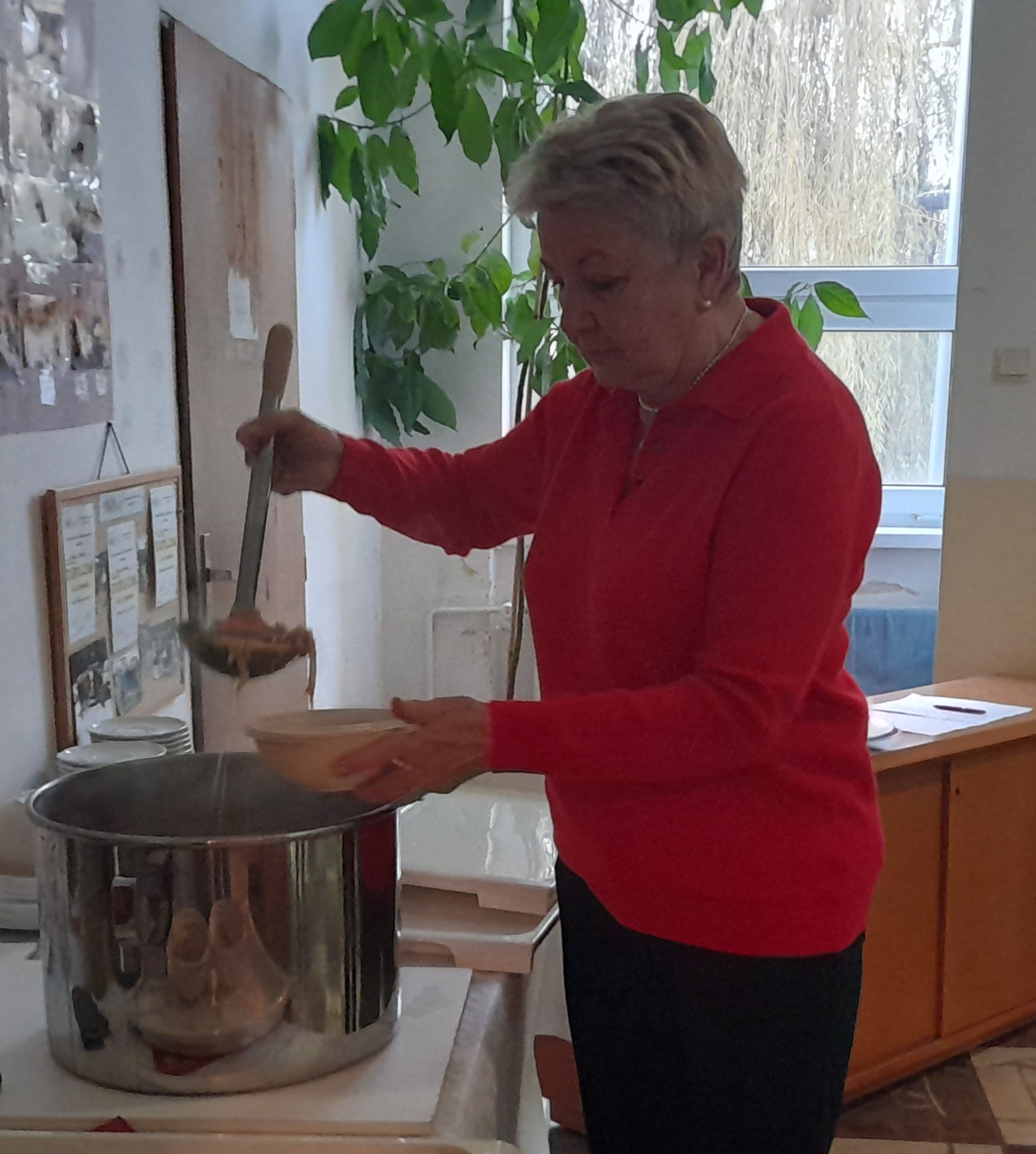 Súčasťou stretnutia bolo aj výborné pohostenie, o ktoré sa postarala Helena Brožeková. Skutočne chutnú kapustnicu nielen navarila, ale ju aj osobne podávala.