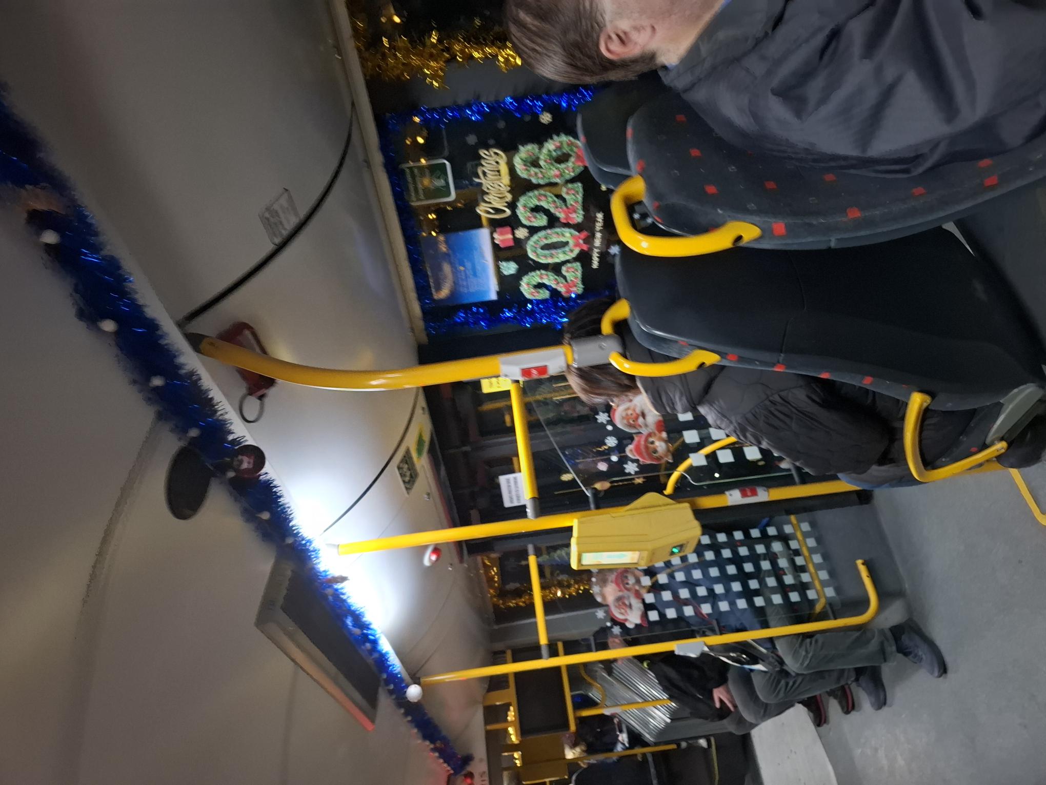 Našich kolegov prekvapil autobus RA4, ktorým sa začiatkom decembra viezli do práce na trase KVP - Vstupný areál USS. Zopár fotografií vysvieteného a ozdobeného interiéru nám zaslala Dana Molčanová z úseku materiálového riadenia, ktorú výnimočná atmosféra veľmi potešila.