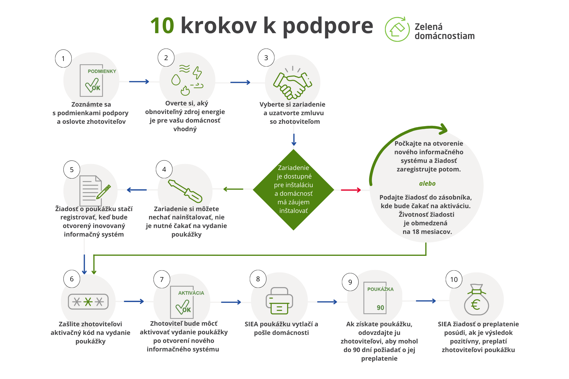 Stručný postup ako požiadať o finančný príspevok môžete vidieť nižšie. Viac informácií o podmienkach projektu nájdete na stránke Zelená domácnosť.