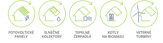 V rámci projektu sú poskytované dotácie pre vlastníkov rodinných domov a bytových domov na inštaláciu týchto zariadení: