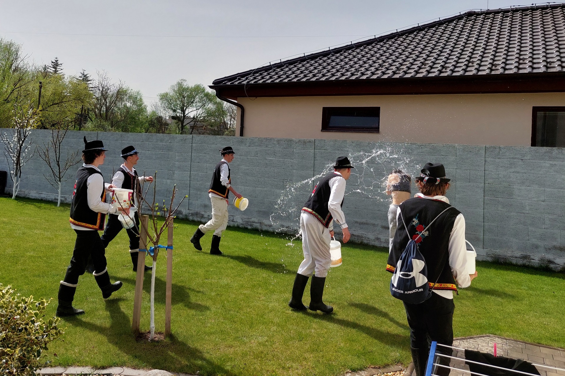 K tradičným veľkonočným zvykom, ktoré zdá sa, stále nie sú na ústupe, patrí oblievačka. Slávka Nahajová nám poslala veselú fotku z tohtoročnej oblievačky, počas ktorej si jej dcéra „užila“ 11 vedier vody. „Oblievači prišli oblečení v krojoch (hoci nie sú z folklórneho súboru) a zaspievali niekoľko ľudoviek v sprievode harmoniky. Vytvorili úžasnú atmosféru a som rada, že zachovávajú tradície“, napísala nám Slávka.