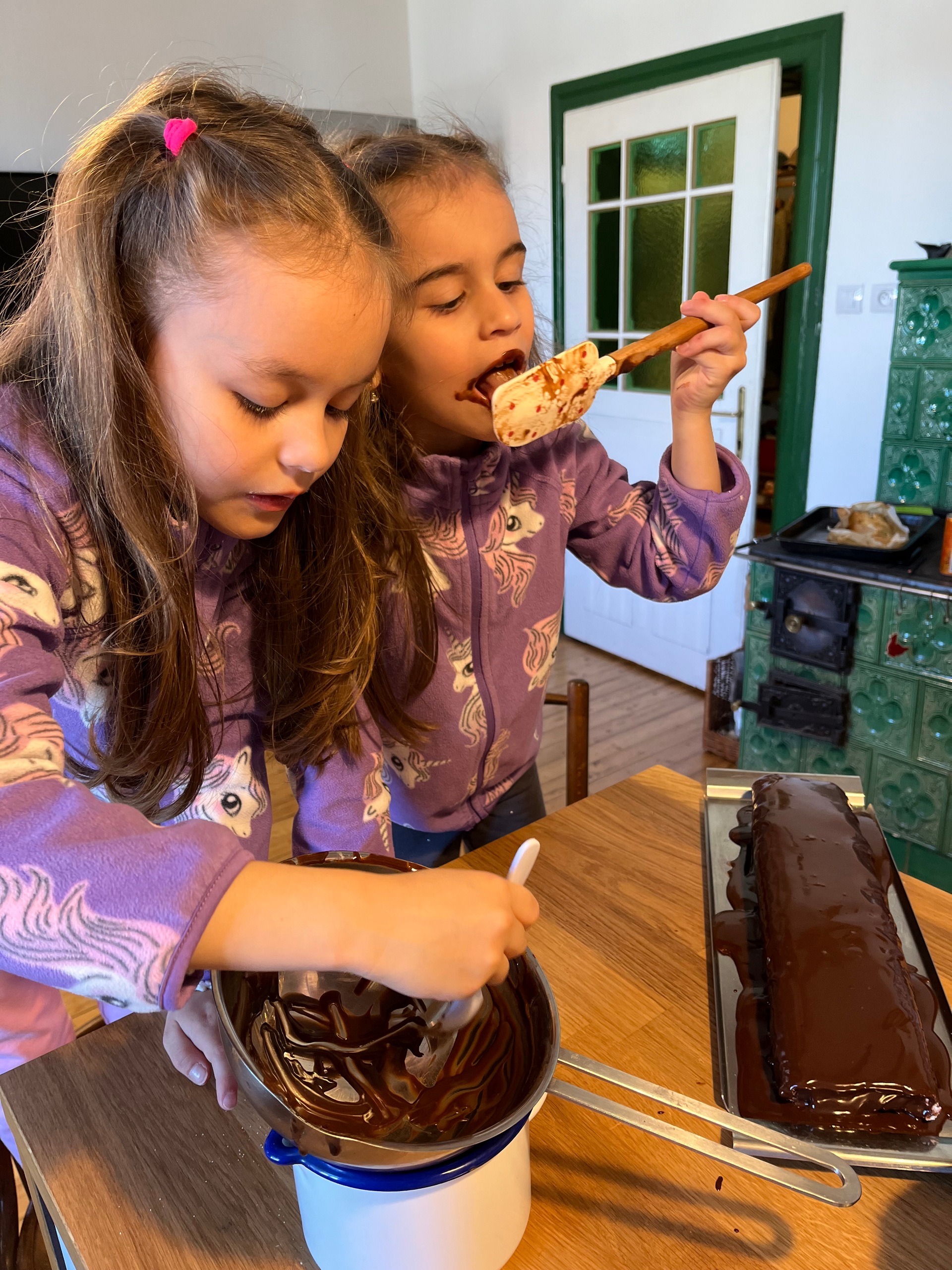 Na Slovensku asi nemáme žiadne sviatky, počas ktorých by sa nepiekli rôzne koláče, torty, zákusky a iné sladkosti. Takmer každá domácnosť má svoj tradičný, zaručený recept na ten najlepší zákusok, ktorý sa odovzdáva z generácie na generáciu. Každá gazdinka bude určite súhlasiť, že nie je potrebné iba sa pridržiavať receptu, ale že zákusok treba počas jeho prípravy aj pravidelne ochutnávať. Tak ako malé cukrárky na fotke, ktoré aj pomáhali, aj výdatne ochutnávali.