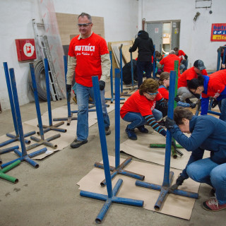 „Na zahodenie“ nebol napokon ani náhradný program. V dvoch veľkých halách čakali na šikovné ruky našich dobrovoľníkov kovové stojany a drevené latky, ktoré slúžia ako zátarasy, „Máme ich takmer sto. Používame ich, keď potrebujeme rozdeliť priestor, pri usmerňovaní návštevníkov, ako dočasné mobilné bariéry, napríklad aj teraz počas slintačky a krívačky, aby ľudia neprichádzali do kontaktu s kopytníkmi,“ spresnil vedúci zoológ Patrik