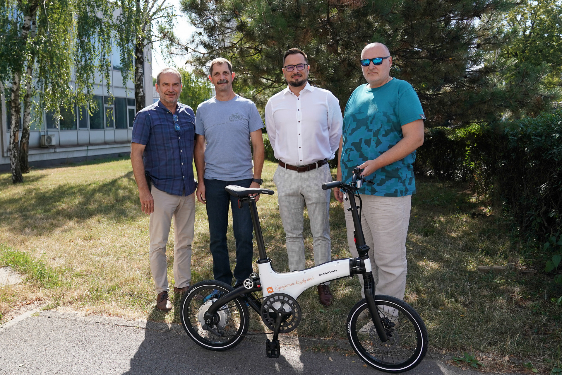 Dnes si dvaja výhercovia prevzali ceny - elektro bicykle Sharvan. Na titulnej snímke vľavo blahoželá Miroslav Čech, riaditeľ predaja benefitných produktov Up Déjeuner, s. r. o. (v strede) Mariánovi Forraiovi . Druhý výherca Stanislav Šofranek je na snímke vpravo. Výhercovia boli vyžrebovaní spomedzi tých, ktorí sa zapojili do prieskumu o spokojnosti používateľov s benefitovou kartou Up, ktorý prostredníctvom X App organizovala spoločnosť Up Déjeuner, s. r. o.