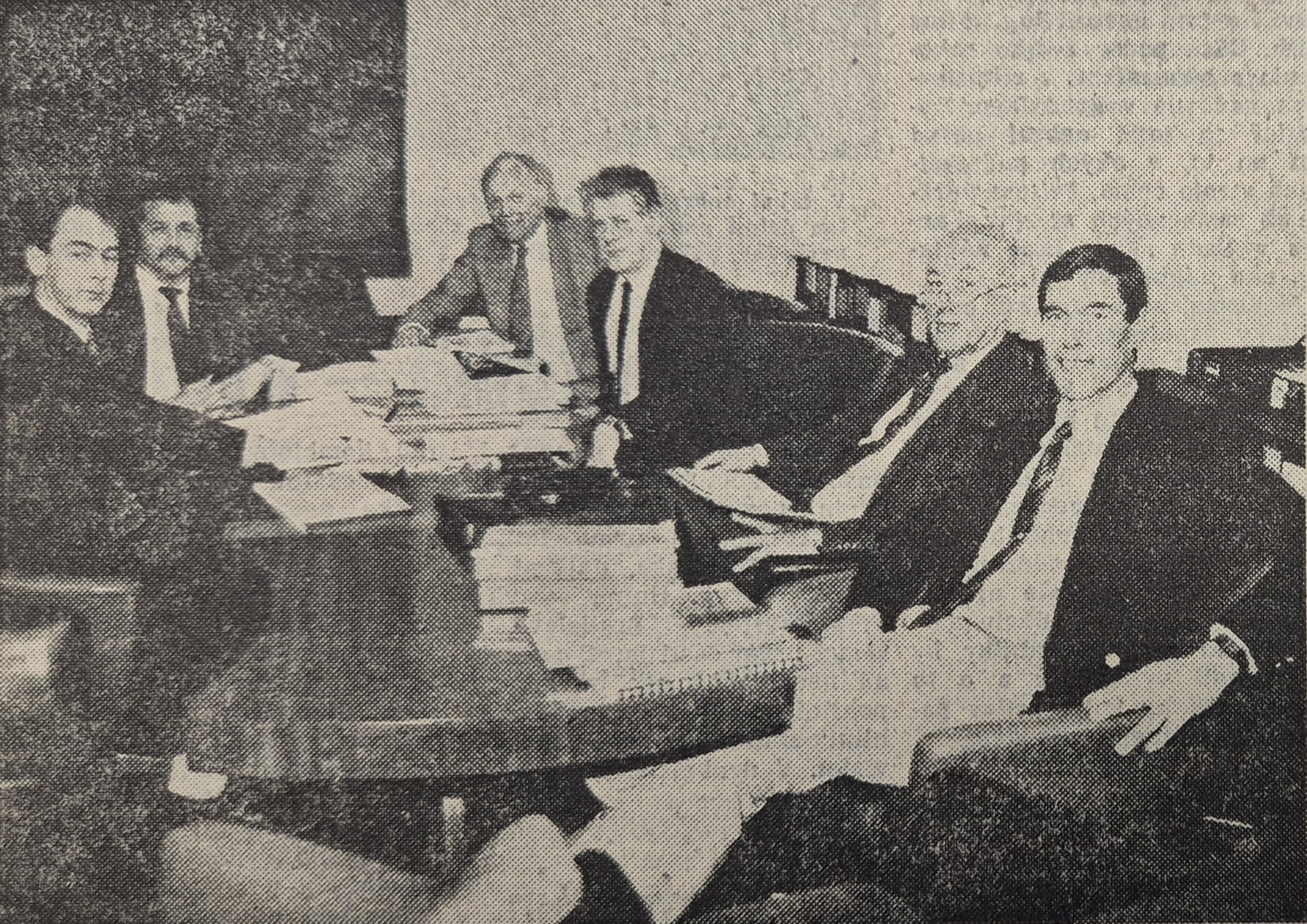 Na fotografii riadiaci pracovníci holandskej firmy Hoogovens. Za našu stranu rokovania viedol Ing. Marián Siegfried, vedúci odboru strategického plánovania divízie Ocel.