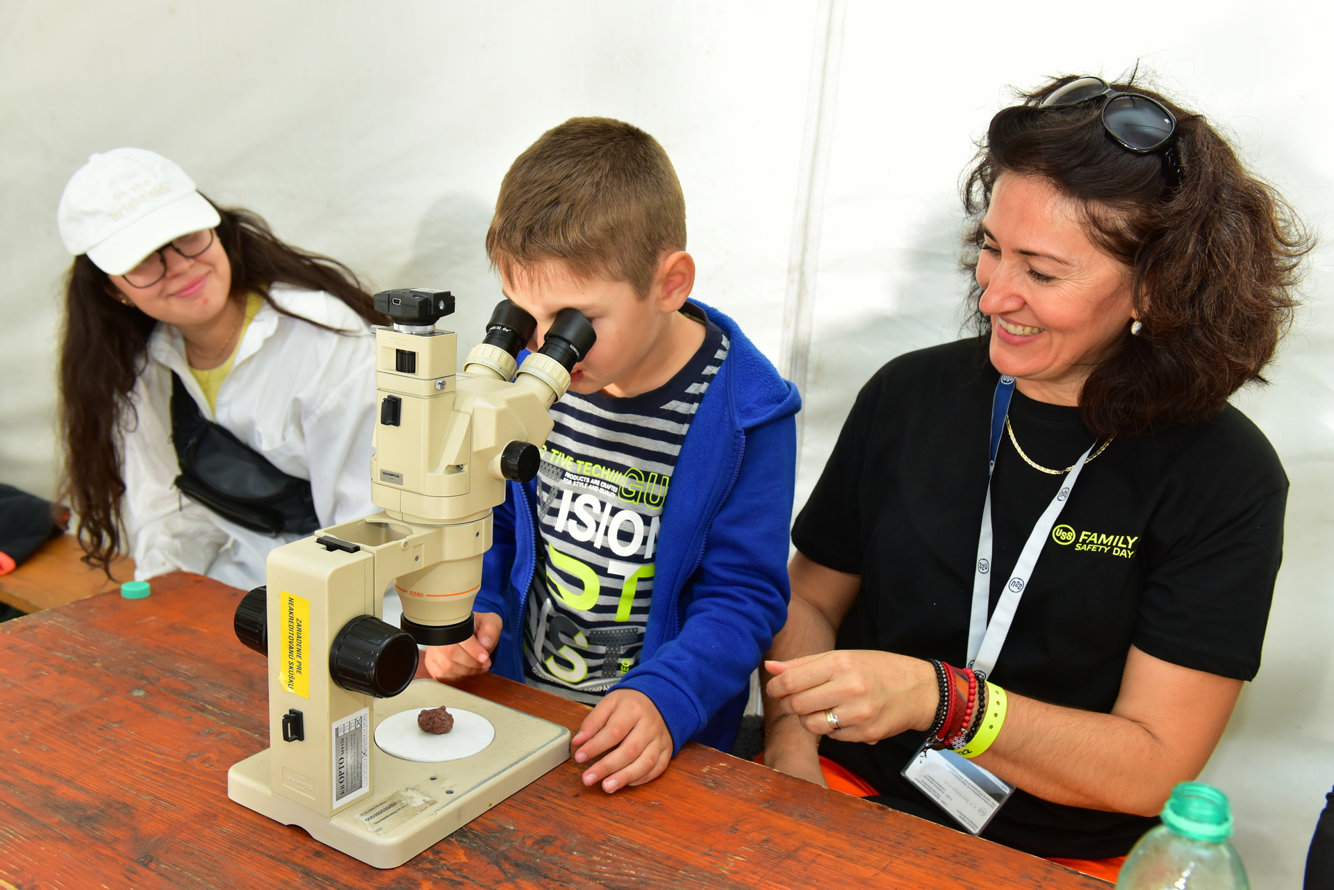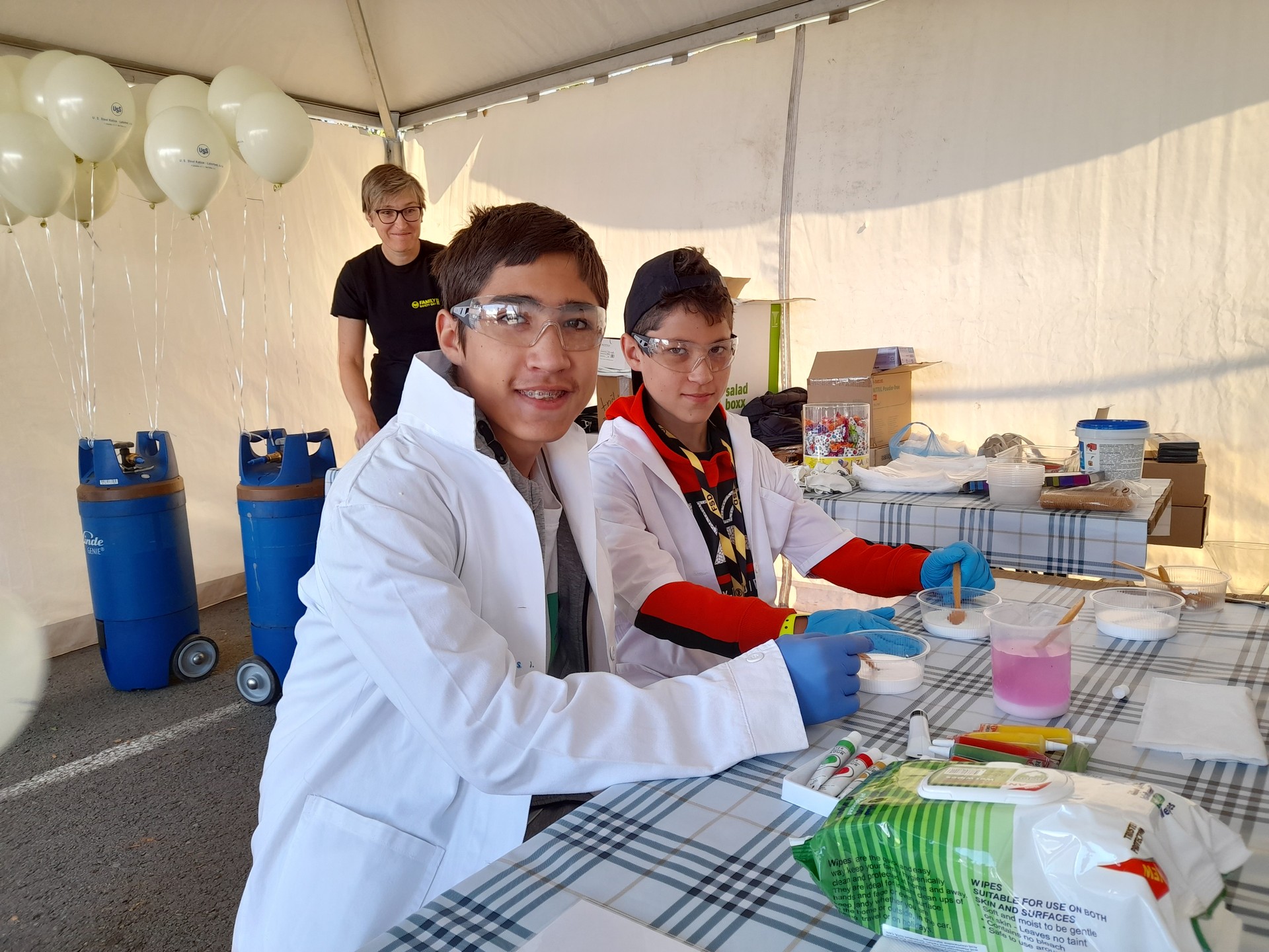 Balóny s logom Labortestu nás nasmerovali práve do stánku tejto dcérskej spoločnosti. Stretli sme tam mnoho mladých chemikov, ktorí sústredene v bielych plášťoch v provizórnom laboratóriu titrovali roztoky rôznych farieb. Podľa Lenky Štefanovej „mala veľký úspech aj výroba vlastnej pastelíny, tzv žabieho slizu. Bez neho sa rodičom deti nepodarilo zo stánku dostať .“