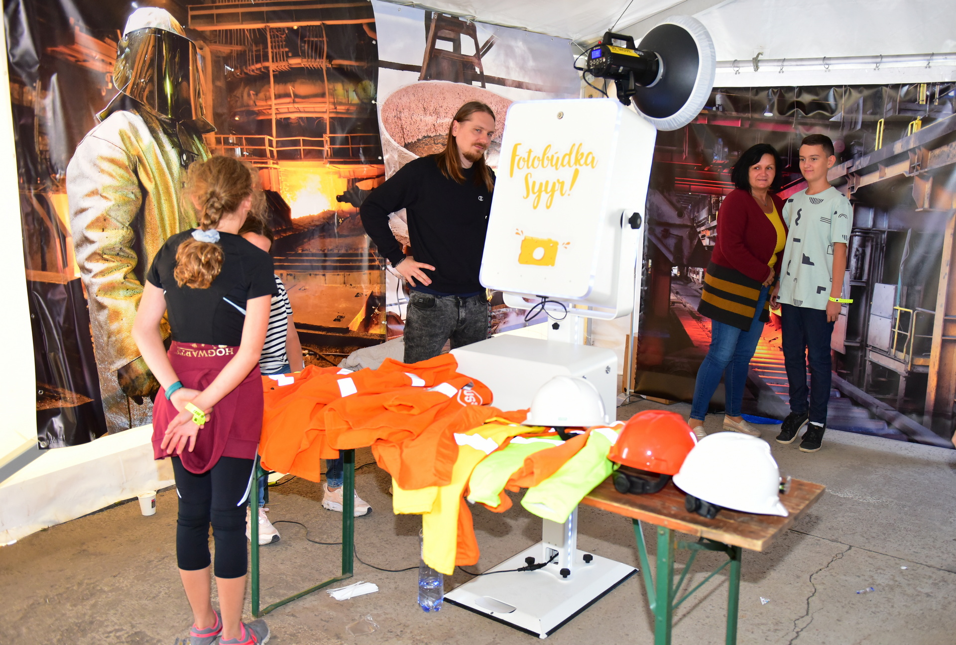 Samozrejme, na podujatí o bezpečnosti nemohli chýbať kolegovia z BOZP. Tí jednak zabezpečili dostatok OOPP na prehliadky DZ Teplá valcovňa a v samostatnom stane pripravili množstvo zaujímavých aktivít. Informuje o nich Ondrej Homola a Judita Zagatová: „Veľmi atraktívne bolo tradične fotenie sa v špeciálnych ochranných odevoch aj fotenie vo fotokútiku, odkiaľ si každý odniesol ako pamiatku záložku do knihy s tromi zábermi svojej rodiny. Pre deti sme pripravili obrázkový kvíz o OOPP aj súťaž na tému záťaž teplom. Deväť najaktívnejších detí navštívilo Kanceláriu prezidenta USSK aj s malým občerstvením.“