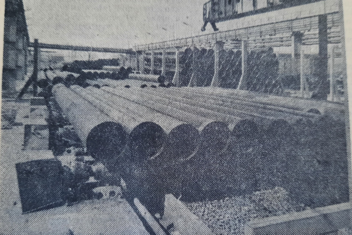 Titulná fotografia je z 19.10.1973: Špirálovo zvárané oceľové rúry sú pripravené na odoslanie. V poslednom čase v našom podniku vyrábajú aj oceľové rúry pre dôležité skupinové vodovody ako Šamorín – Bratislava a Turček – Handlová – Prievidza.