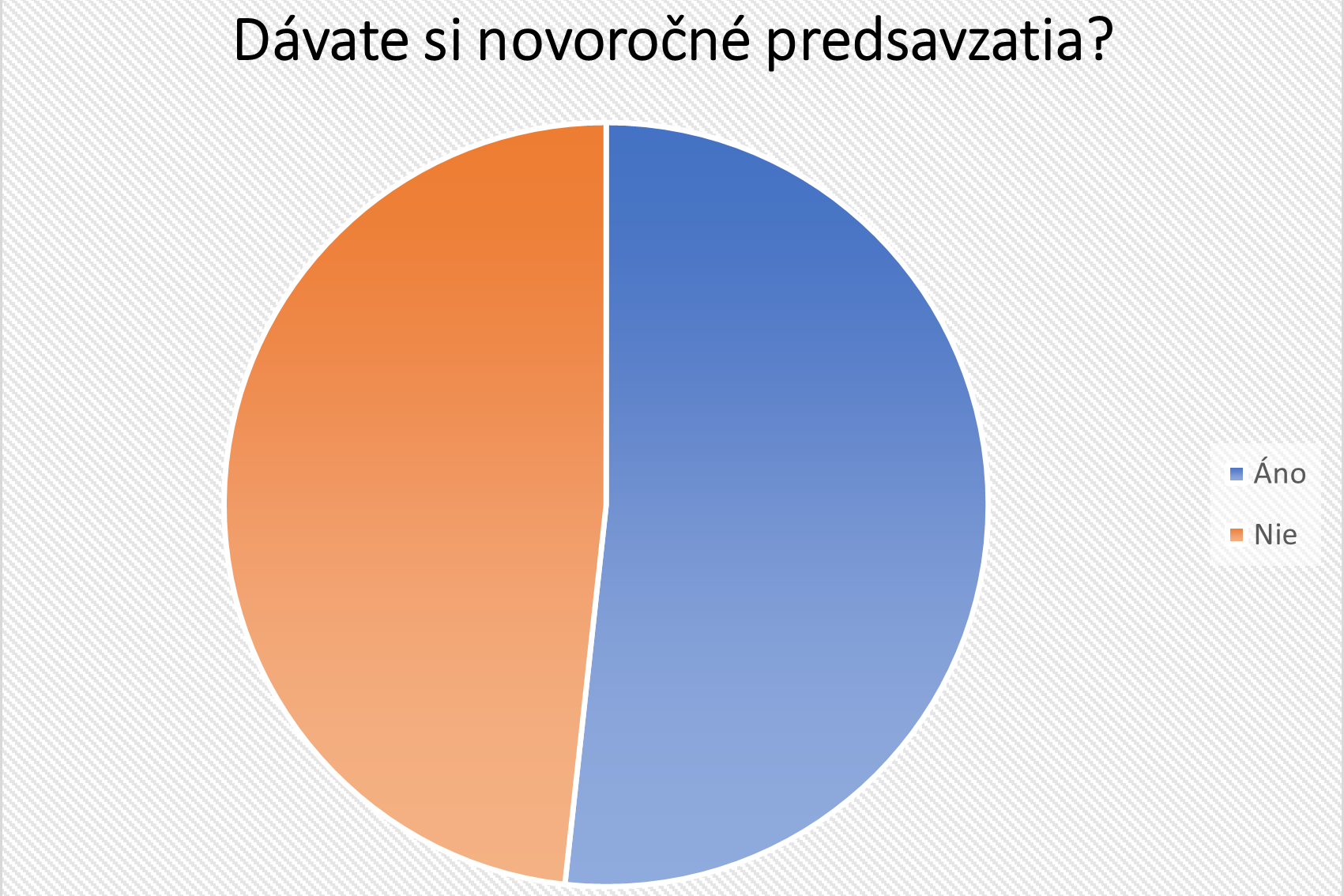Dnes sme vyžrebovali troch z vás, ktorí ste sa zapojili do našej ankety. Pýtali sme sa, či si dávate novoročné predsavzatia. Výsledok je tak „pol na pol“. Z 58 účastníkov ankety vstupuje do nového roka s novými predsavzatiami 30 a naopak, predsavzatia si nedáva 28 ľudí.