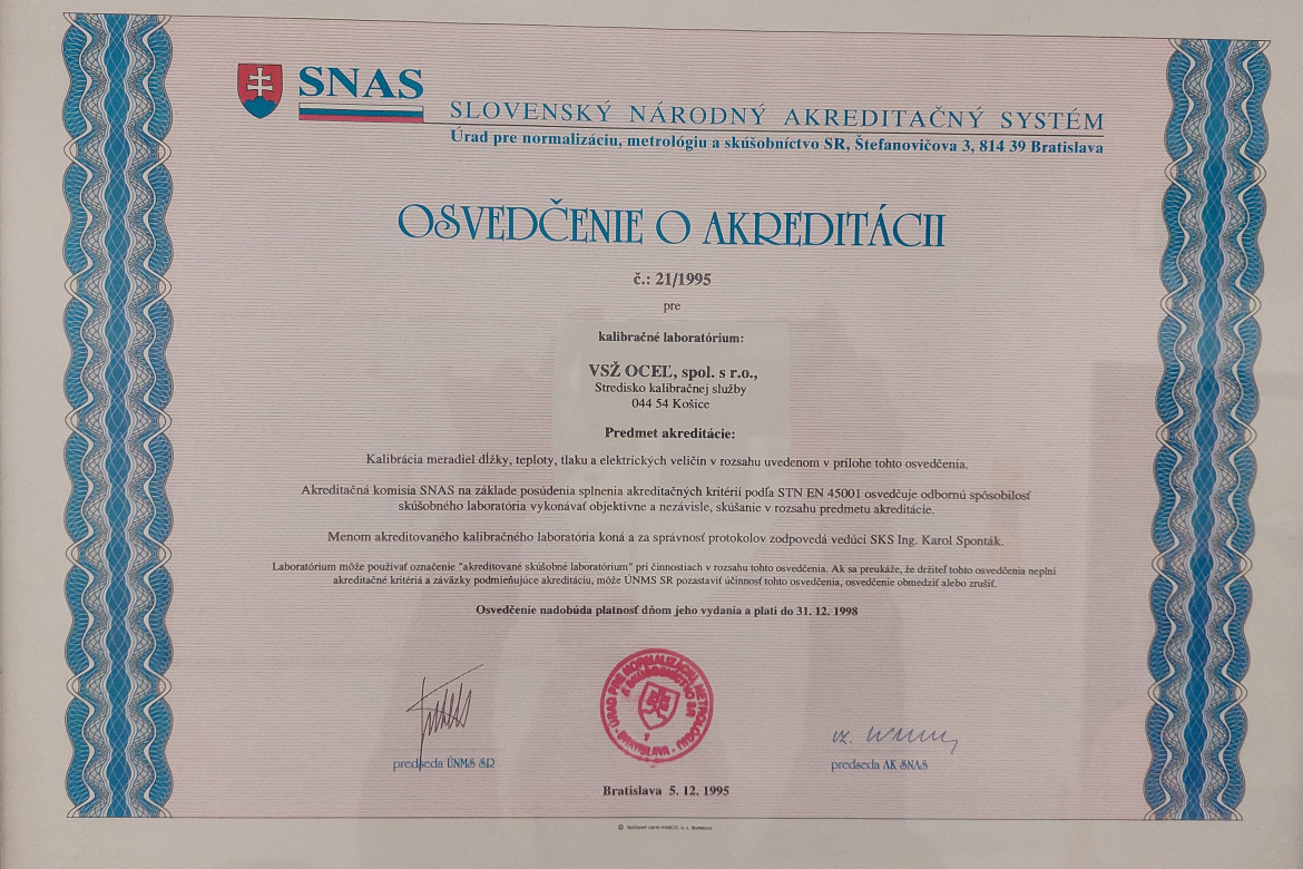 Dnes je, samozrejme, všetko inak. Naše kalibračné laboratóriá sú akreditované podľa STN ISO 17025. Kalibrujú sa v nich zariadenia ako libely, uholníky, dutinomery, termoelektrické snímače teploty, deformačné či plynové tlakomery, multimetre, skúšačky, revízne prístroje, ale aj drsnomery, momentové kľúče či otáčkomery. Menovať by sme mohli dlho.