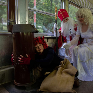 Teší sa na vás sv. Mikuláš, anjel, čert, dobrovoľníci z Detskej železnice Košice a herci z divadla CROCUS.