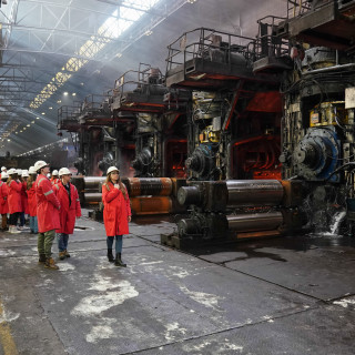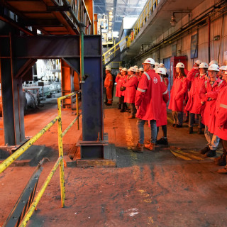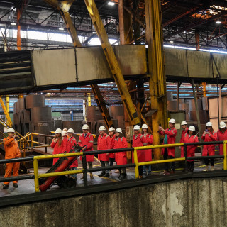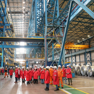 Na Pozinkovacej linke č. 3 sa ujal sprievodného slova František Gregor z Vonkajších vzťahov. Popri vstupnom, čistiacom a pecnom úseku sme sa dostali k zinkovej vani, vzduchovým nožom, ktoré sú centrálnou časťou galvanického pozinkovania. Na Inšpekčnej prevíjacej linke sme sa dozvedeli, aký je rozdiel medzi klasickým odporovým zvarom a laserovým zvarom. Po expedícii už nasledovala prezliekáreň a obed s darčekmi pre výhercov prvej ceny.