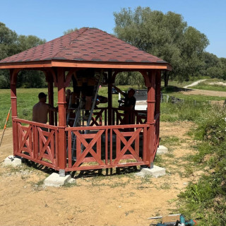 „Samozrejme, bolo nás viac, ktorí chceli montáži veliť, ale nakoniec sme to spoločnými silami veľmi dobre zvládli. Pôvodne sme na to chceli ísť vedecky a všetko rozmerať, ale nakoniec zvíťazil sedliacky rozum. Jednoducho sme zložili základnú konštrukciu a umiestnili ju na pätky, aby sme si presne označili miesta na ukotvenie. Potom sme altánok posunuli nabok, osadili pätky a vrátili konštrukciu na svoje miesto. Spájanie strechy po sekciách už nebolo náročné, akurát vyžadovalo veľa sily a zručnosti.“