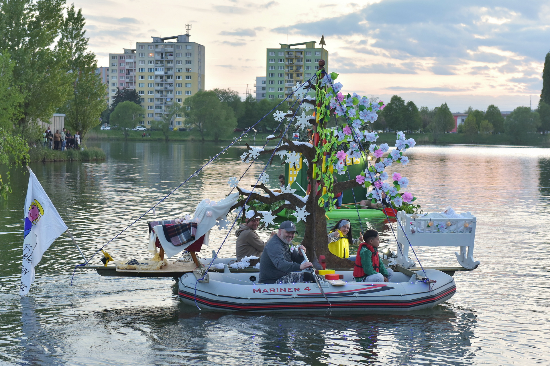 Počasie bolo tohto roku na Košických Benátkach ideálne. Nádherný slnečný deň a takmer bezvetrie.Ocenilo to aj 14 posádok, ktoré na brehu jazera kreatívne zdobili svoje netradičné plavidlá.