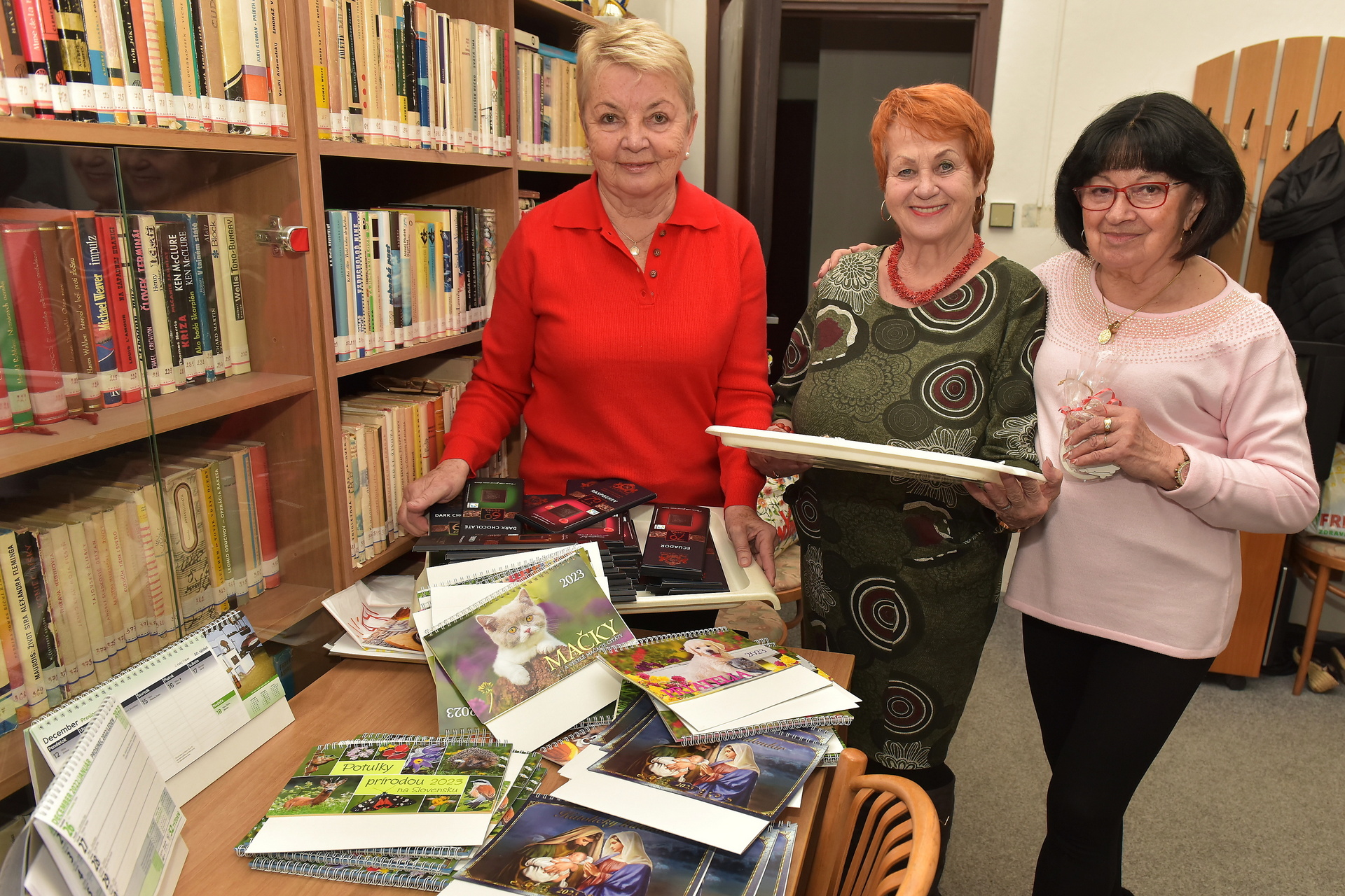 Seniorov potešili drobné darčeky od nás – kalendáre a sladkosti.
