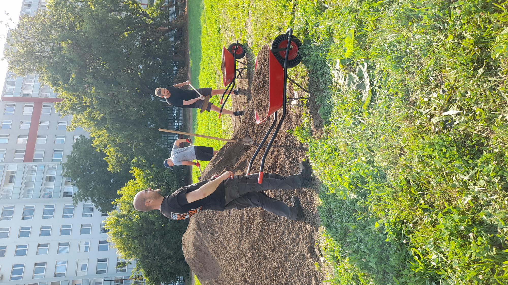 „S revitalizáciou atletického oválu, futbalového ihriska a doskočiska sme začali koncom mája. Prenajali sme si mechanizmy, ktoré zhrnuli zarastené plochy, odviezli odpad. Príjemne nás prekvapilo, keď sa ukázala antuka. Upravili sme doskočisko, položili netkanú geotextíliu, aby sme zabránili vstrebávaniu piesku pri daždi a položili sme aj sieťky proti krtkom. V júni sme plochu futbalového ihriska zarovnali ornou pôdou. Futbalové bránky dostali nový náter a nové sieťky.“