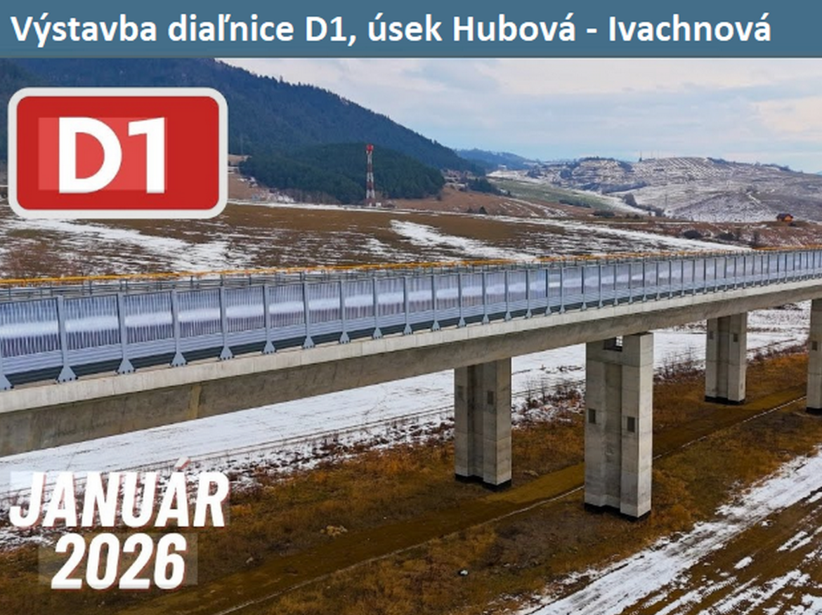 Pozrite si nové video z 31. januára z výstavby diaľnice D1, úseku Hubová – Ivachnová. Tento úsek diaľnice bude po jeho otvorení zároveň dlho očakávaným obchvatom Ružomberka. Video prostredníctvom dronu približuje celý úsek diaľnice D1 medzi Hubovou a Ivachnovou. Začína od mimoúrovňovej križovatky Hubová po tunel Čebrať, pokračuje križovatkou Likavka pod hradom Likava, severnými obchvatmi obcí Martinček a Lisková a končí napojením na existujúcu D1 pri Ivachnovej. Zachytáva aktuálny stav výstavby na konci januára 2026, vrátane najdlhších mostov na úseku, estakád, protihlukových stien a miesta zosuvu pôdy, ktoré v roku 2025 malo za následok posun otvorenia diaľnice na rok 2026. Dozviete sa, cez ktoré obce a katastre trasa prechádza, aké sú základné technické parametre stavby a prečo tento úsek patrí medzi najnáročnejšie na Slovensku.