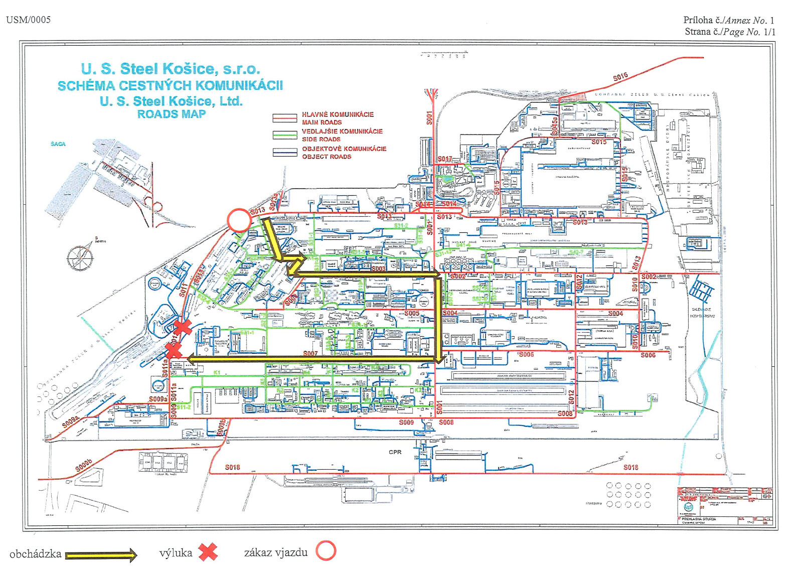 Počas doby výluky sa obchádzka určuje po komunikácií vedľajšej S32-1,S31-1,objektovej komunikácii, S003-hlavná, S001- hlavná, S007-hlavná ( Opravy oceliarni - OD2, OC1,Tepláreň, hlavná cesta, Spekáreň, Vápenka). Zastávky vnútrozávodovej dopravy od vrátnice č.1 až po Štrkovňu nebudú obsluhované .