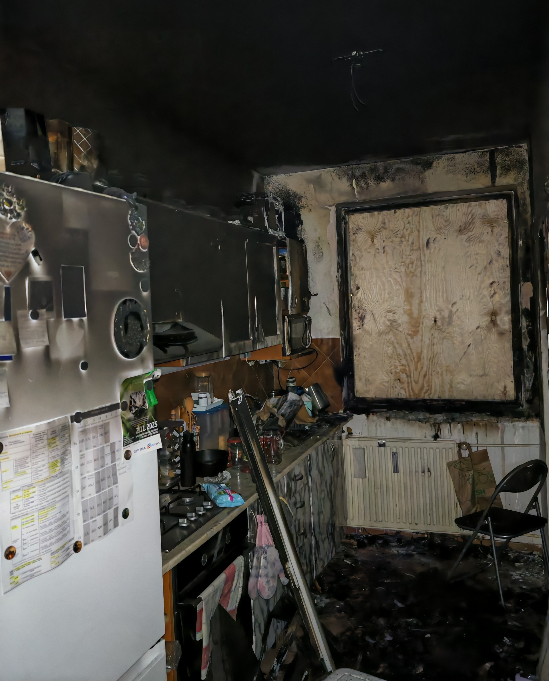 Okrem zdemolovanej kuchyne a zničeného bytu, došlo k poškodeniu všetkých spotrebičov, ako je počítač, televízor, X box....