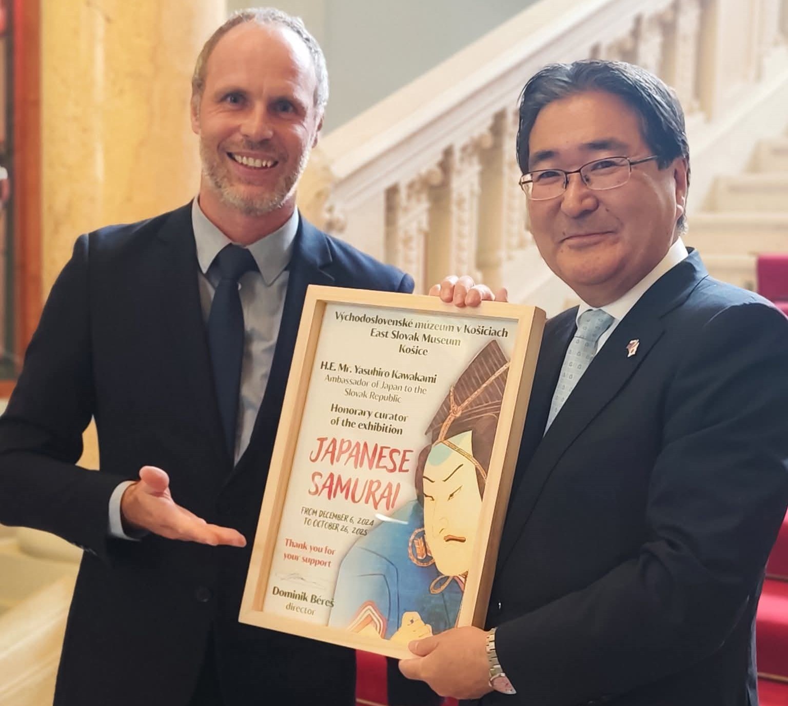 Minulý týždeň navštívil výstavu Yasuhiro Kawakami, veľvyslanec Japonska na Slovensku. Počas takzvanej finisáže sa riaditeľ múzea Dominik Bereš (vľavo) poďakoval partnerom výstavy za podporu a návštevníkom za veľký záujem.