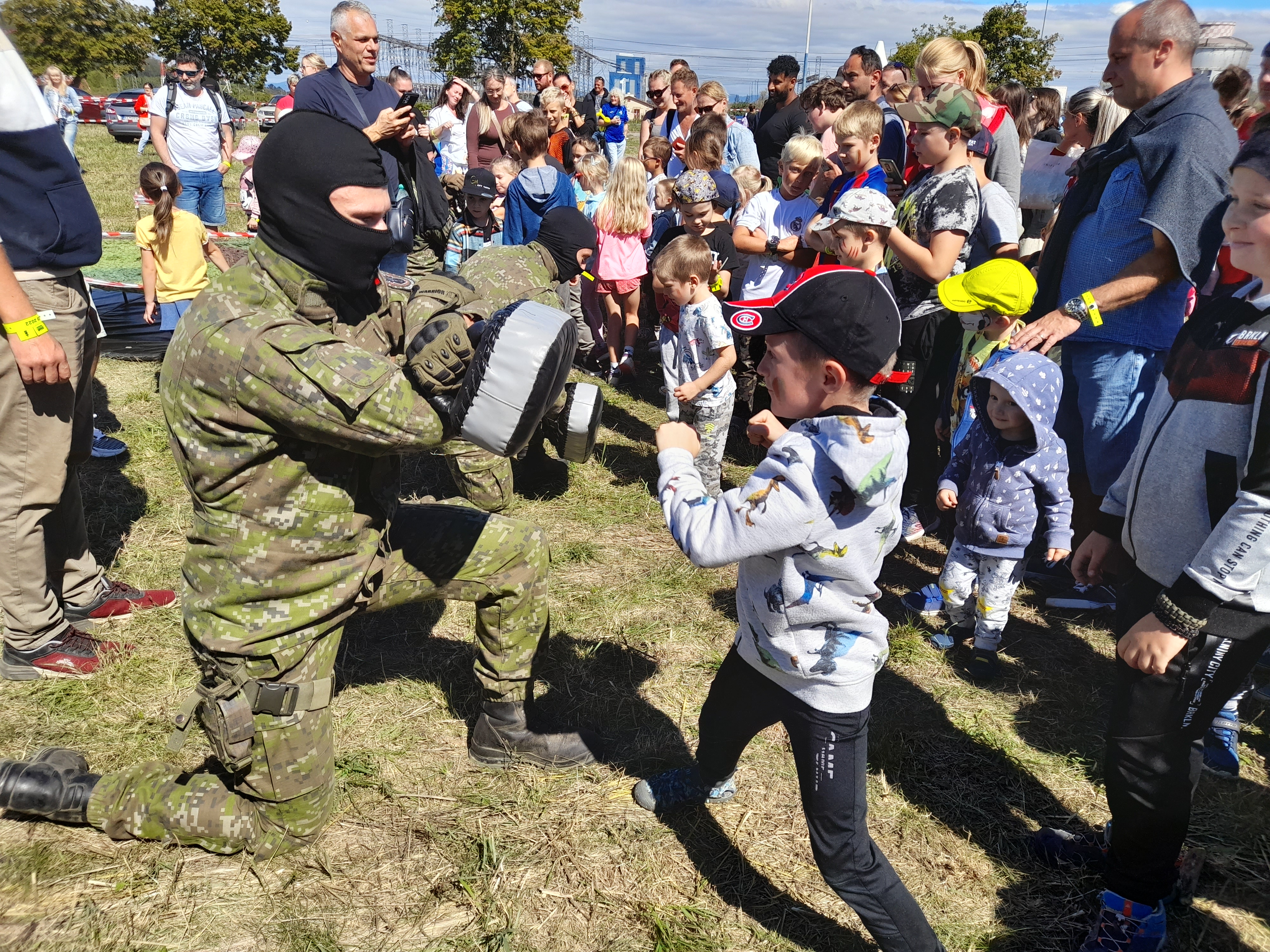 Rovnako obrovský záujem bol celý deň o armádne tatrovky zoradené na trávnatej ploche. Hoci bolo treba vyliezť poriadne vysoko, deti neváhali a preskúmali všetko, čo sa dalo. Veľkej pozornosti sa tešili aj ukážky sebaobrany a vojenských zbraní, a deti, samozrejme neobišli ani prekážkovú dráhu. Obraz Ozbrojených síl SR dopĺňala regrútska skupina.