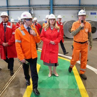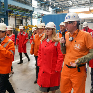 Prezidentka Čaputová si následne prezrela linku na výrobu žiarovo-pozinkovaných plechov, ktoré nachádzajú uplatnenie najmä v stavebnom a automobilovom priemysle. Stretla sa aj s predsedom odborovej organizácie OZ KOVO Jurajom Vargom. Po prehliadke výrobnej prevádzky sa spolu s viceprezidentom USSK Miroslavom Kiraľvargom krátko stretla s novinármi.