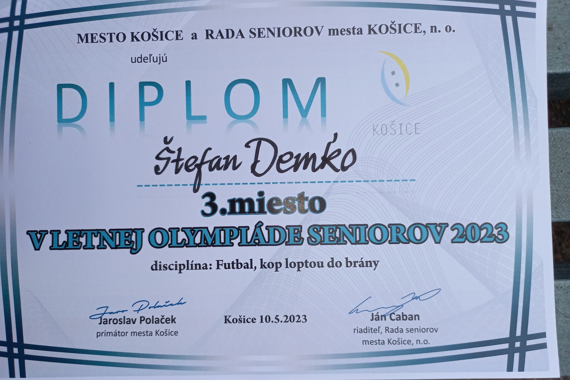 Napokon si naši predsa odniesli z olympiády aspoň jeden cenný kov. Bronzovú medailu a diplom získal za 3. miesto Štefan Demko v konkurencii 30 športovcov v kategórii Kop na bránku.