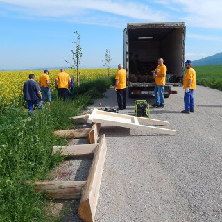 Vďaka fotogalérii, ktorú Rasťo Šelepský poskytol, môžeme vidieť našich kolegov pri vysádzaní aleje v roku 2015. Ako vidieť na fotografii z apríla minulého roku (vpravo), za deväť rokov lipy krásne vyrástli.
