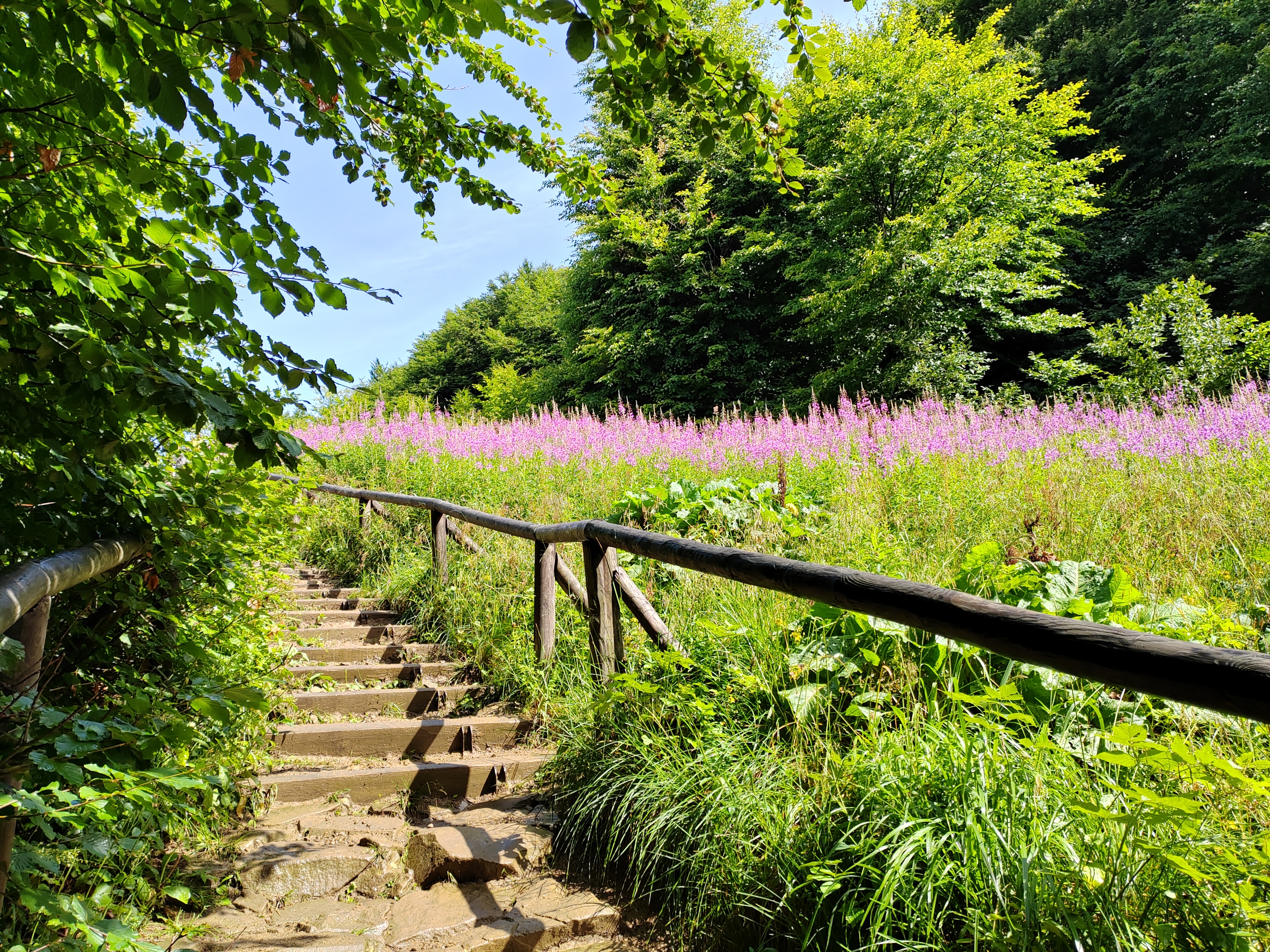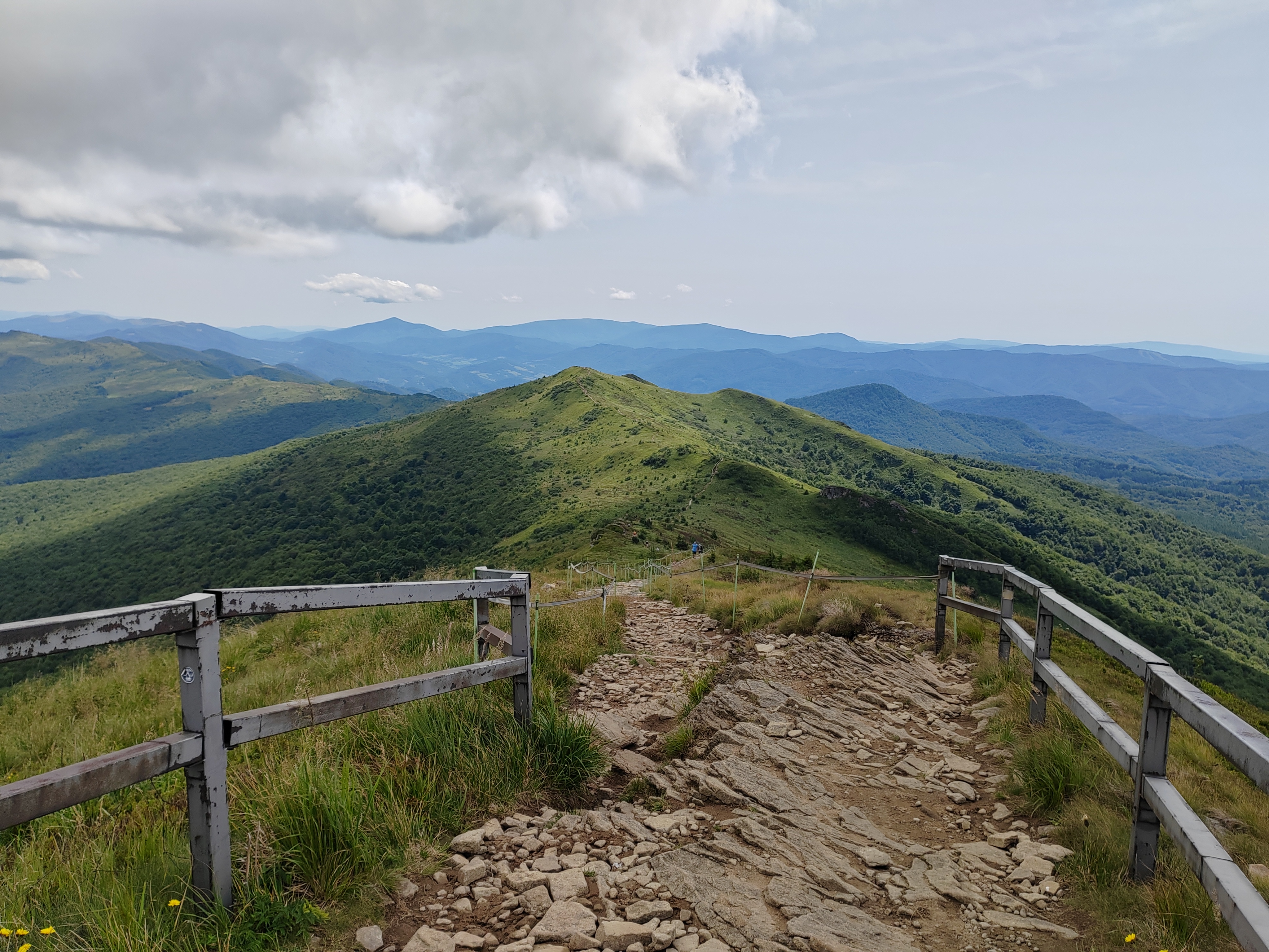 Na túru sme vyrazili z dedinky Wołosate, len pár kilometrov od slovenskej hranice. Začali sme v daždi. Les bol mokrý, tichý a hmlou zahalený. Ako sme stúpali vyššie, dažďové kvapky pomaly ustupovali. Keď sme vyšli z lesa, všetko sa zmenilo – akoby sme vstúpili do iného sveta. Slnečné lúče sa predierali cez obláčiky a rozžiarili rozkvitnuté lúky. Vzduch bol plný vôní kvetov a okolo nás sa vznášali motýle. Zelené kopce sa rozprestierali do diaľky a vytvárali nekonečný priestor na pokoj a rozjímanie.