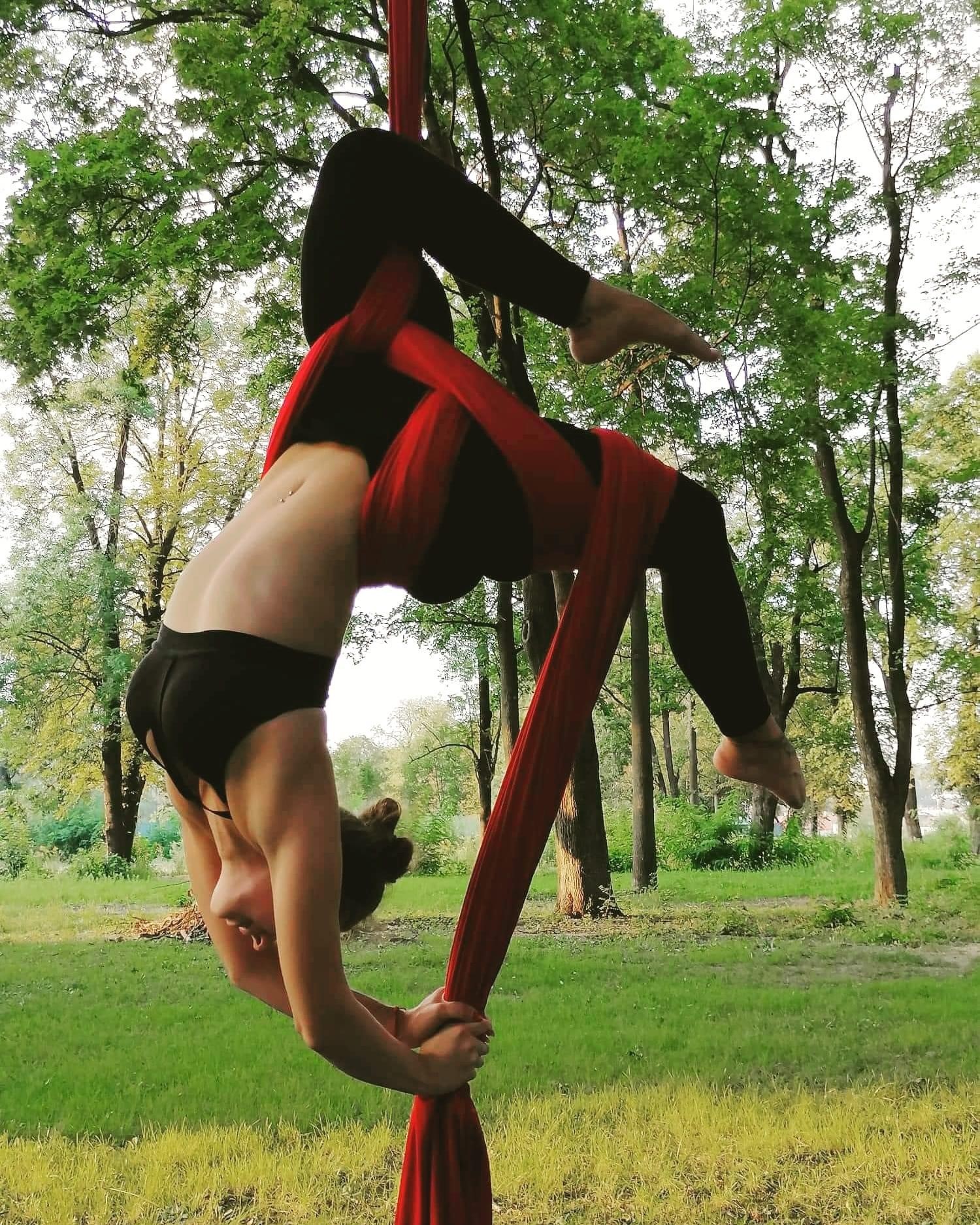 Áno, priestor je problém. Trénerka, u ktorej som začínala, z Košíc odišla a priestory v rámci ZUŠky už neboli k dispozícii. Vzdušná akrobacia ma neskutočne uchvátila a nechcela som sa tejto záľuby vzdať, tak som hľadala vhodný priestor po vlastnej línii. Napokon som si našla priestory v jednej škole. Cvičila som tam v čase, keď sa mi narodil synček, brávala som ho so sebou. Keď nebolo kde, s kamarátkou sme v lete cvičili v prírode na strome, to bolo zaujímavé, občas sa niekto pristavil