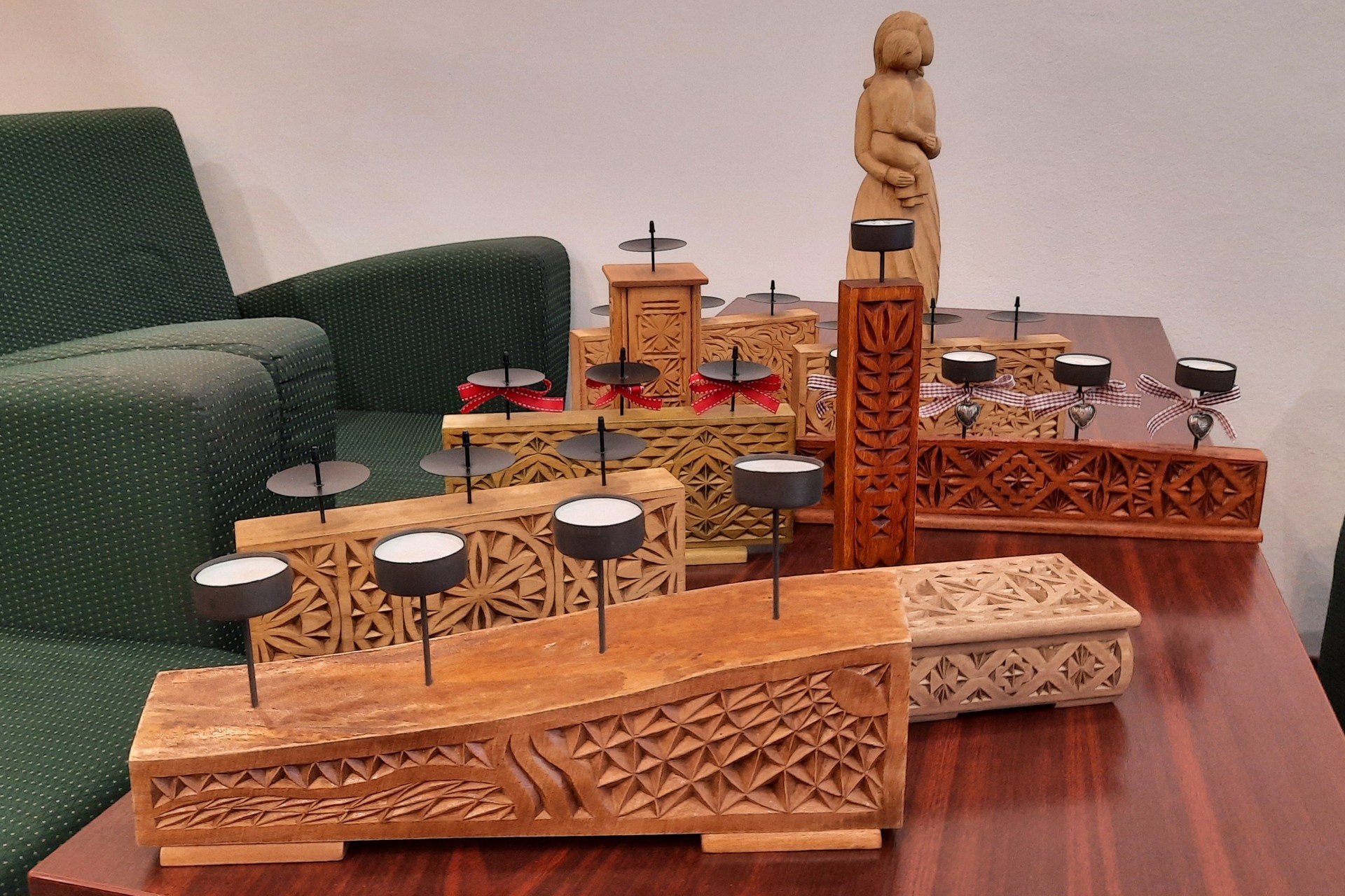 Po tejto prvotine hľadala spôsob, ako sa ďalej rozbehnúť a ako sa tomuto umeniu priučiť od skúsených drevorezbárov. Objavila kurzy, ktoré ponúkal ÚĽUV. Tie už absolvovala všetky. A tak sa postupne rodili svietniky, reliéfy, sochy, objavila geometrickú drevorezbu. Do ÚĽUVU chodiť neprestala. „Tak ako niekto chodí na aerobik, ja chodím do ÚĽUVU. Som rada s ľuďmi, ktorí majú podobné záľuby ako ja. Lektori sú tam kvalitní, aj keď ja si idem svojou cestou,“ hovorí a dodáva: „Už som získala aj certifikát lektora, ale kurzy zatiaľ nevediem.“