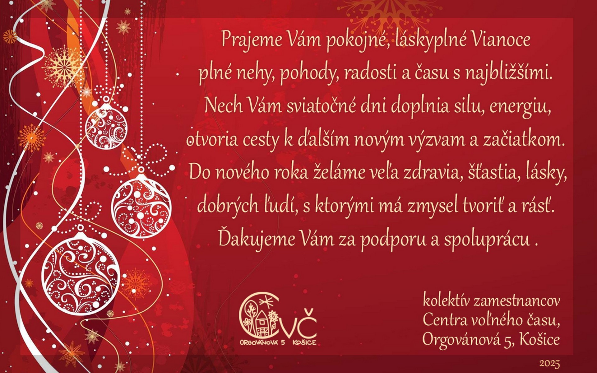 Od košického Centra voľného času, ktoré sme grantom z programu Spoločne pre región podporili v tomto, ale aj v minulom roku, sme dostali milé vianočné prianie. A nielen to. Riaditeľka centra Helena Labovská pripojila správu o tom, ako sa v roku 2025 darilo učebni technickej gramotnosti na ich elokovanom pracovisku Juhoslovanská 2 na sídlisku Ťahanovce, ktorá vznikla vďaka našej finančnej podpore a funguje už druhý školský rok: