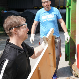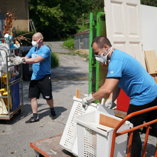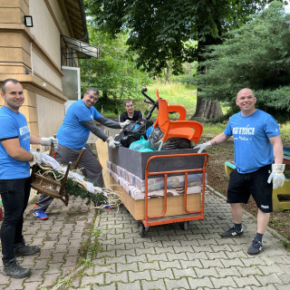 V druhej skupine sa zišla partia dobrovoľníkov, ktorá mala za úlohu vynášať nepotrebný majetok Centra do kontajnera. Tento rok sa tejto aktivite dala špeciálna priorita, keďže minulý rok táto činnosť nebola v pláne dňa. Rudolf a Ján sa spojili s Jozefom a Alexandrom. Nosenie im išlo od ruky a na konci dňa bol kontajner úplne plný, preto na budúci rok objednáme dva kontajnery.