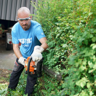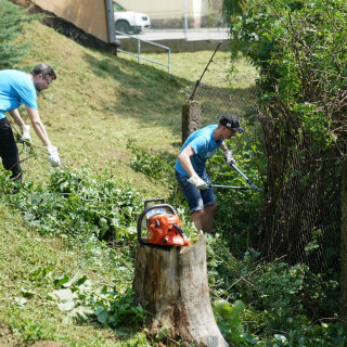 Andrea a Kristína mali na starosti pomoc so strihaním kríkov a ich odnášanie. Tento tím je poriadne zohratý, keďže minulý rok vykonával rovnakú činnosť, pri ktorej exceloval. Ide o činnosť, ktorú je najviac vidno, keďže kríky sa nachádzajú pred Centrom, a preto sme tam museli nasadiť šikovné ruky našich dobrovoľníčok.